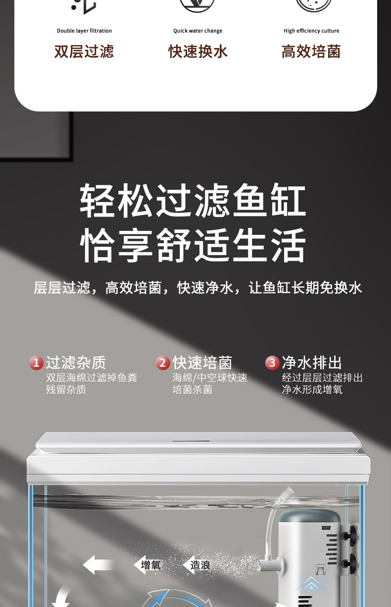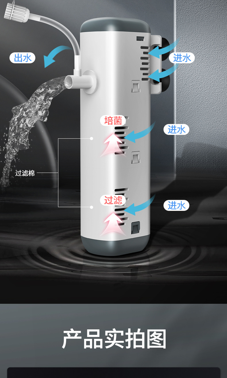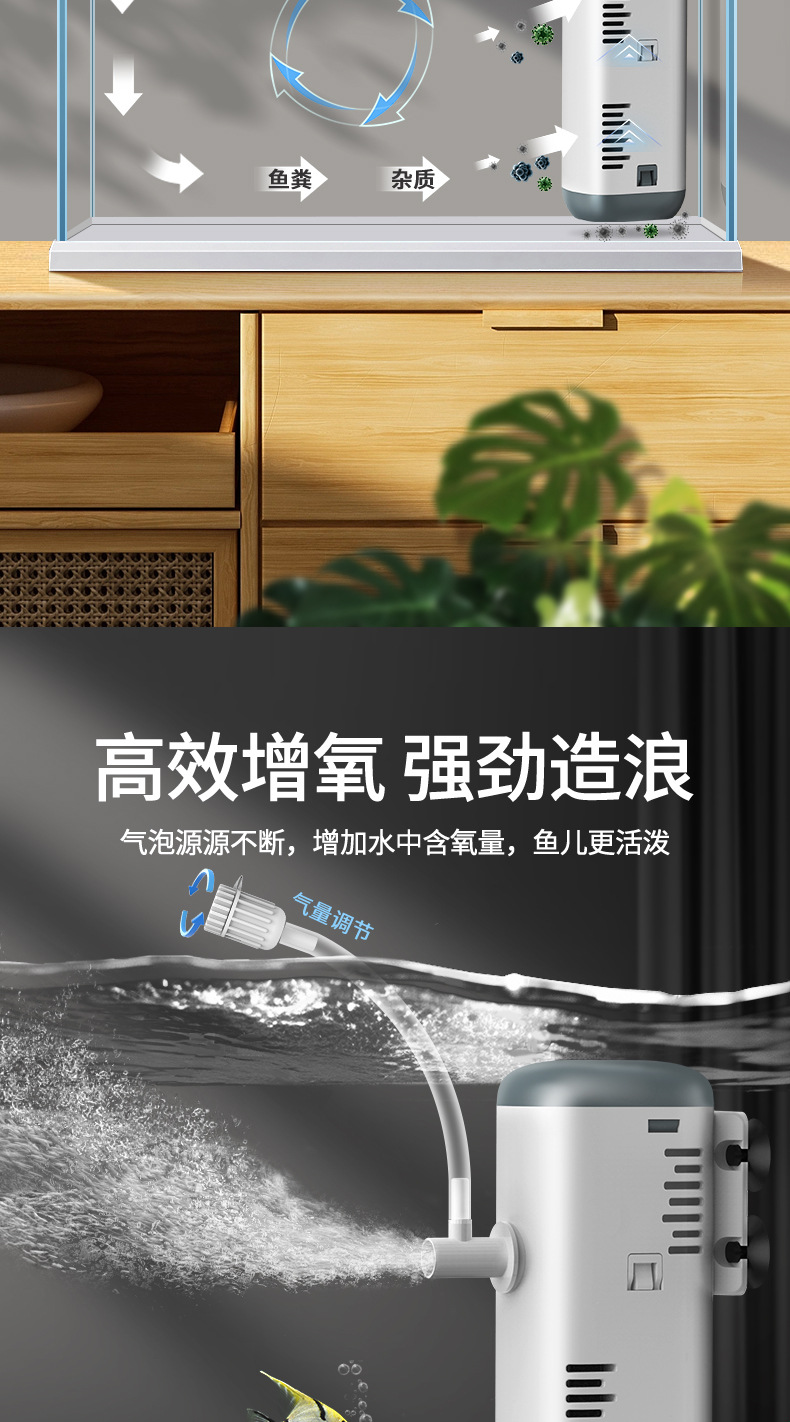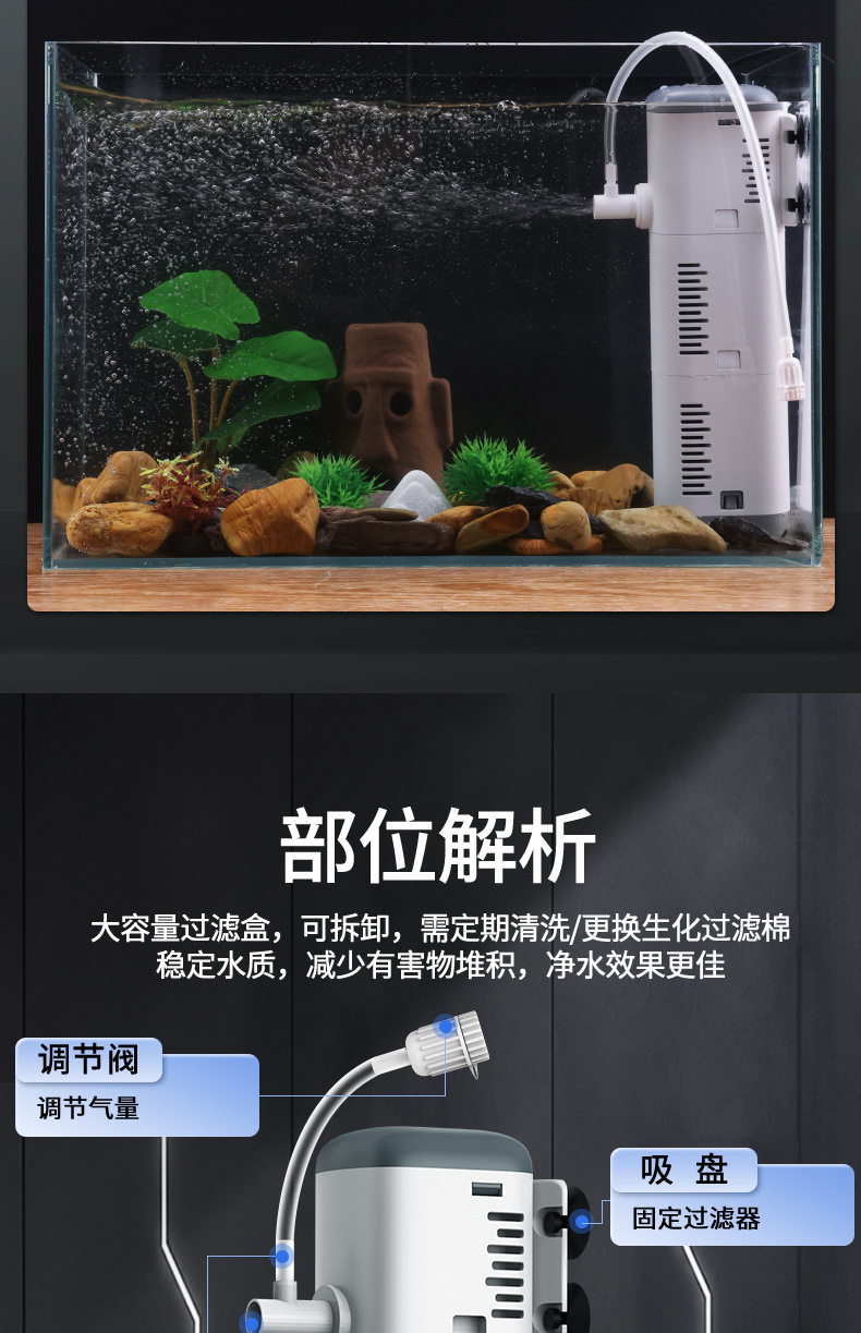 물고기 탱크 필터 3 대 1 내장 산소 증가 정수 순환 시스템 작은 흡입 음소거 물이없는 잠수정 펌프스토어 가기
