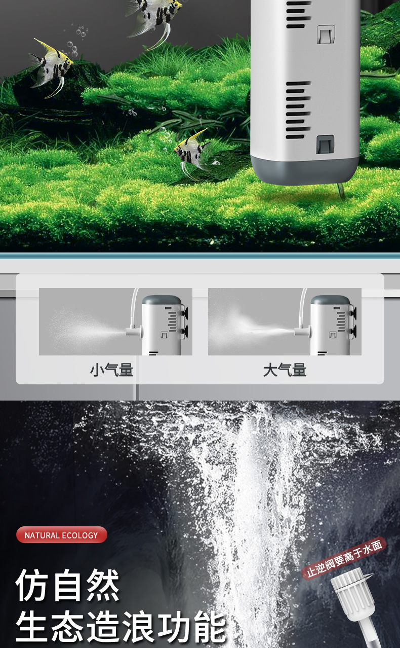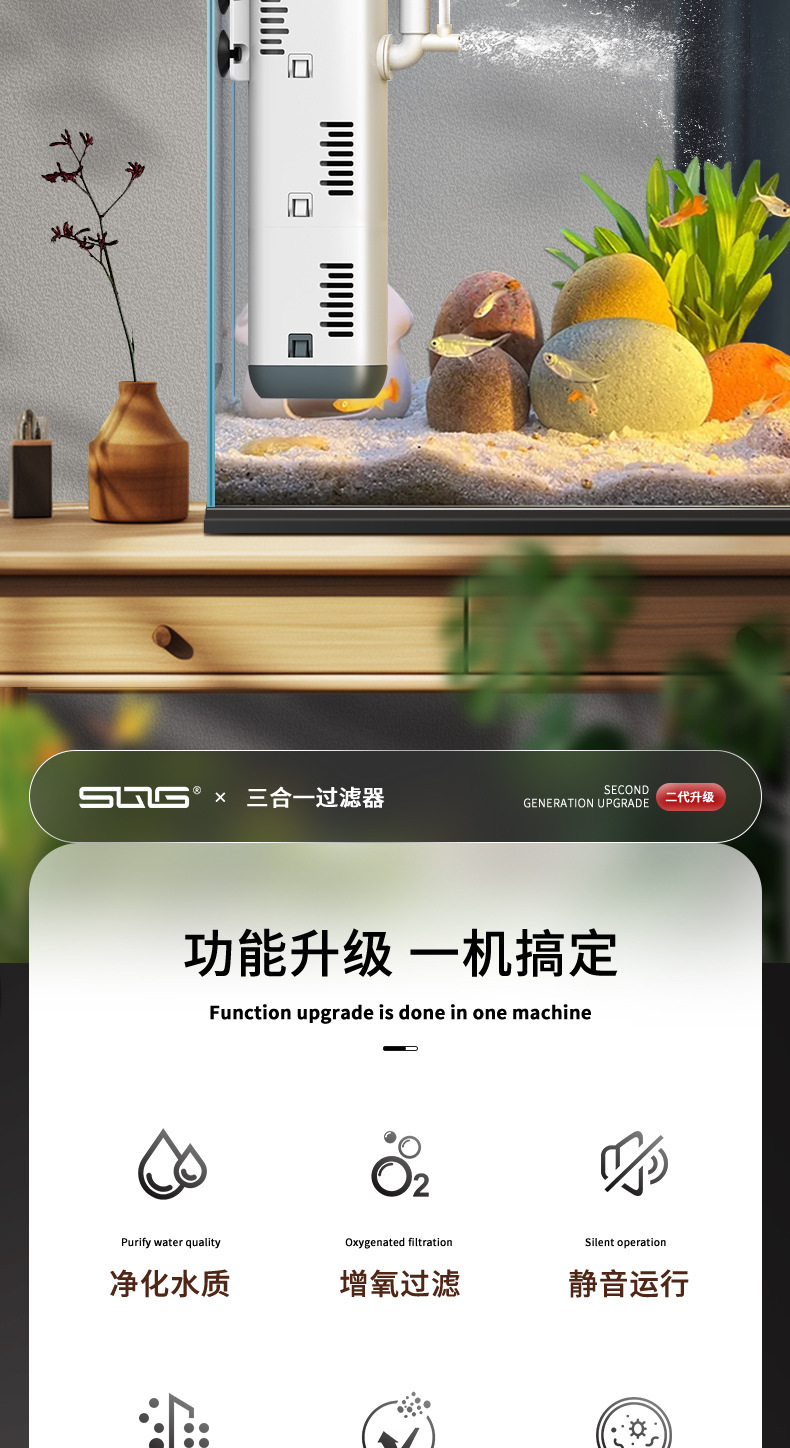 물고기 탱크 필터 3 대 1 내장 산소 증가 정수 순환 시스템 작은 흡입 음소거 물이없는 잠수정 펌프