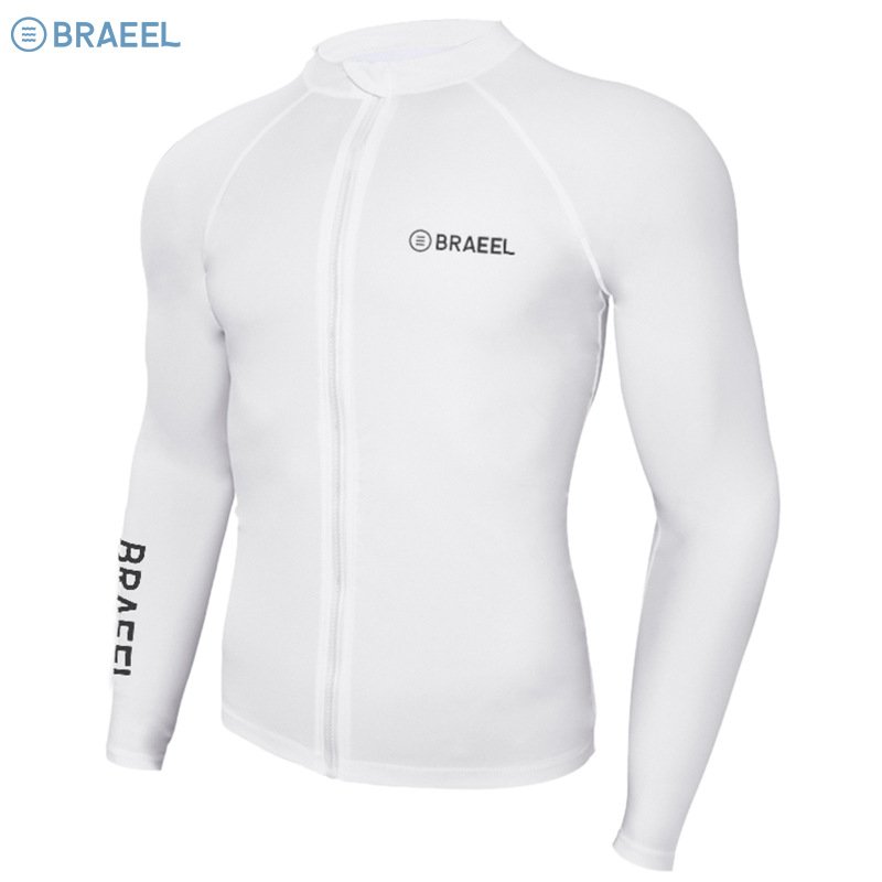 • 남자의 순수한 흰색 지퍼 탑