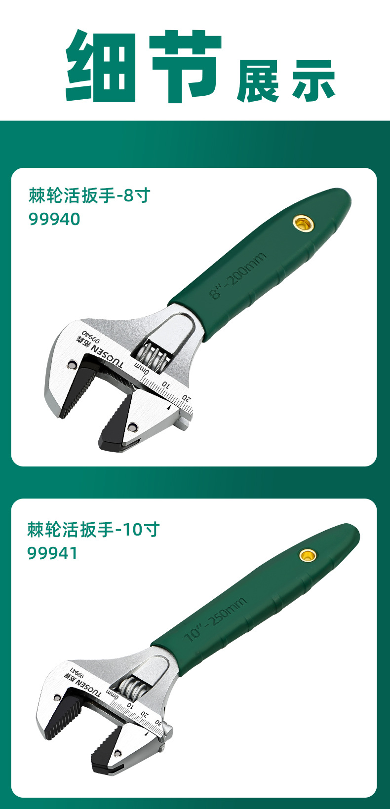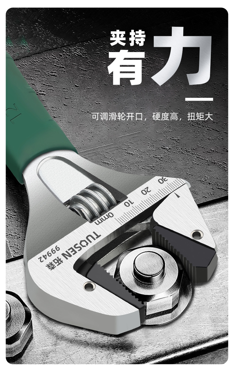 Tuosen 8 인치 빠른 조정 가능한 렌치 다기능 수동 조정 가능한 렌치 도구 대형 오픈 래칫 조절 가능한 렌치