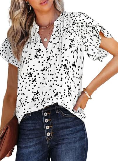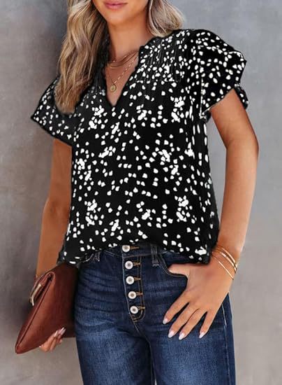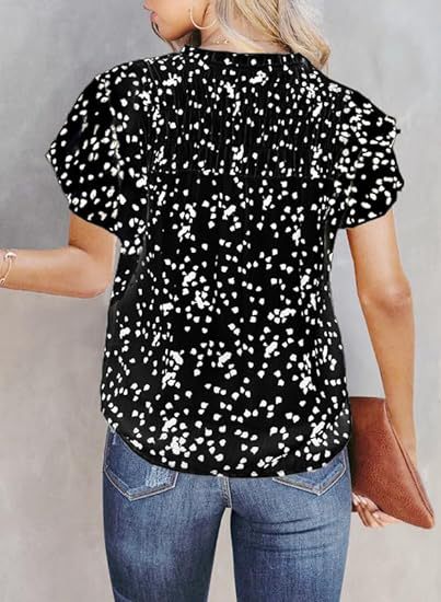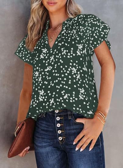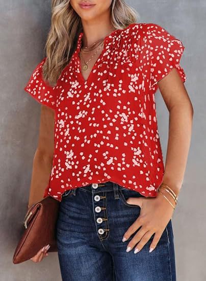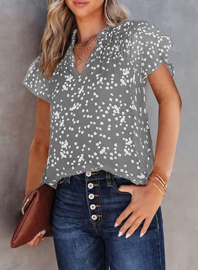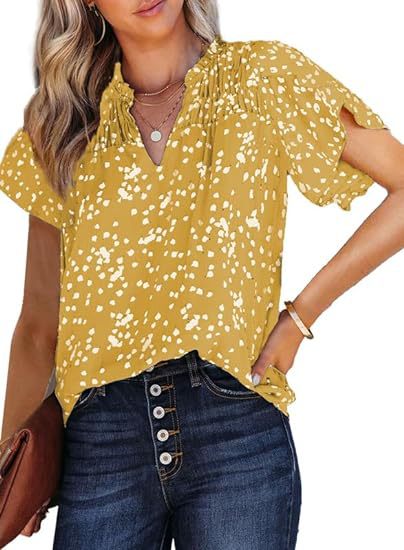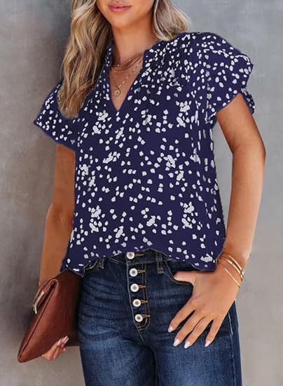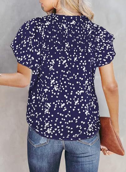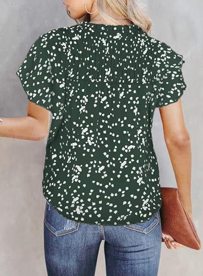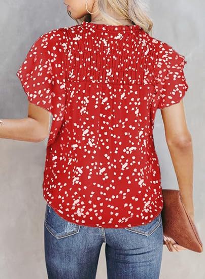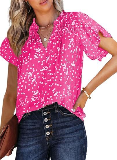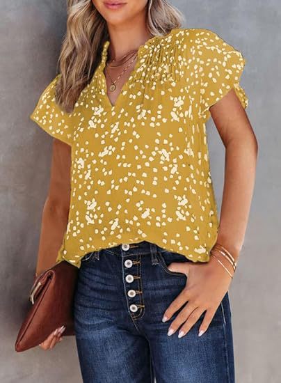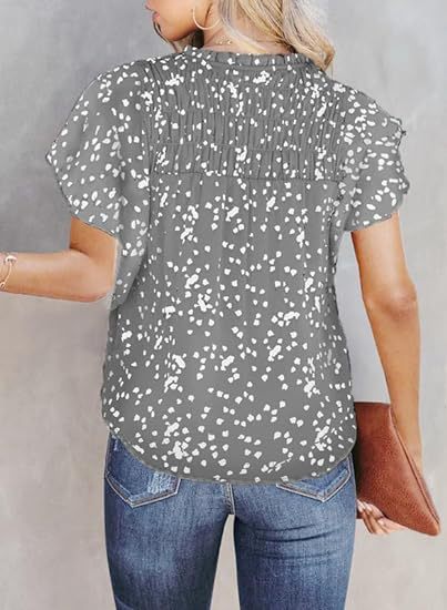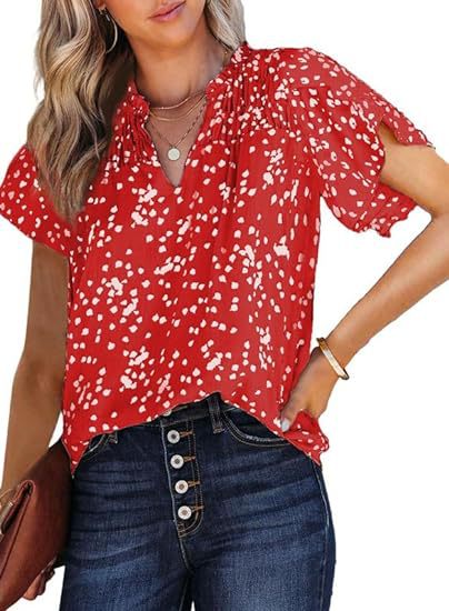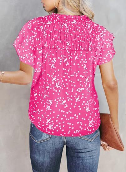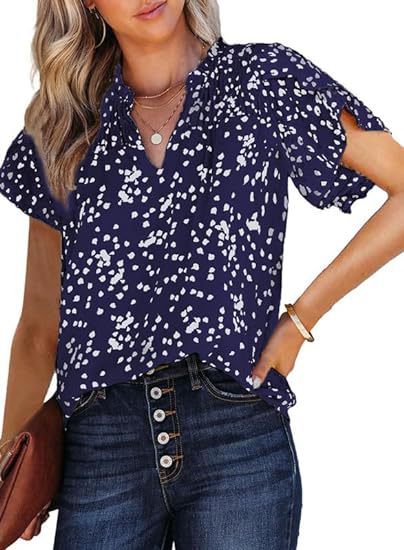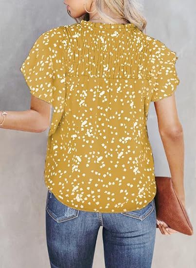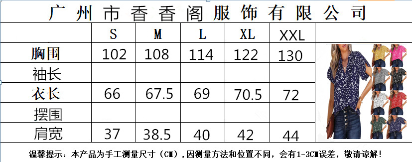 2025 아마존 크로스 보더 여성 캐주얼 브이넥 플로럴 프린트 스모크 반소매 시폰 셔츠 보헤미안 탑스토어 가기