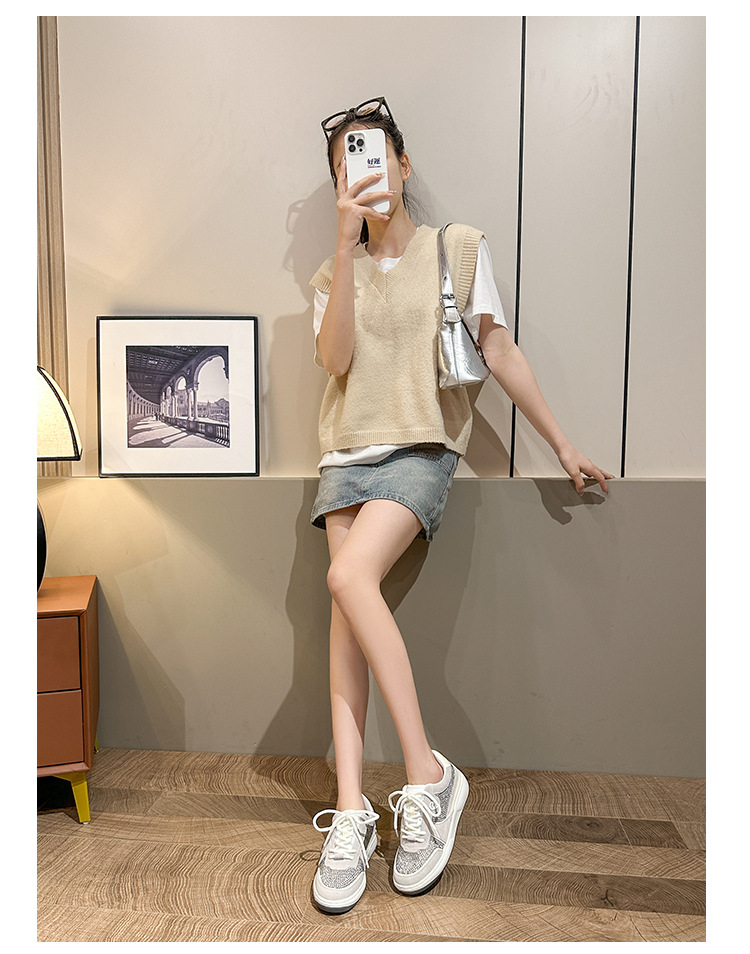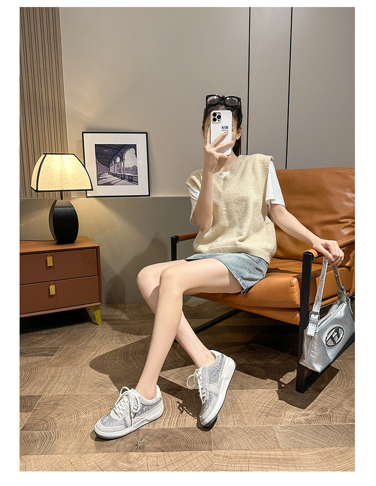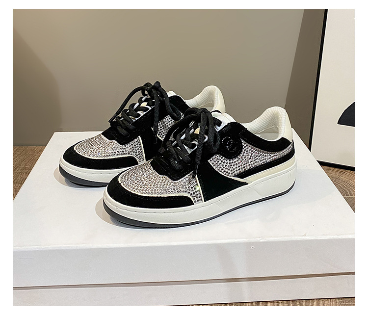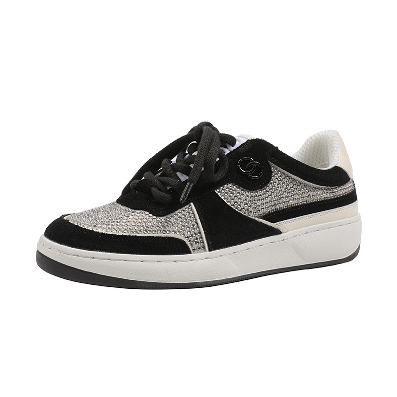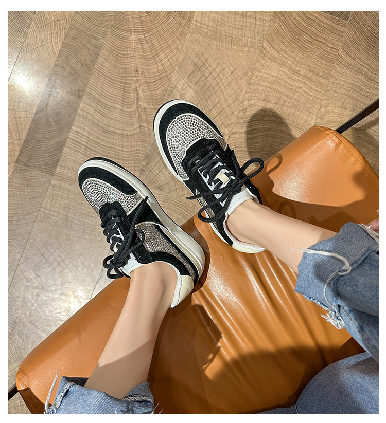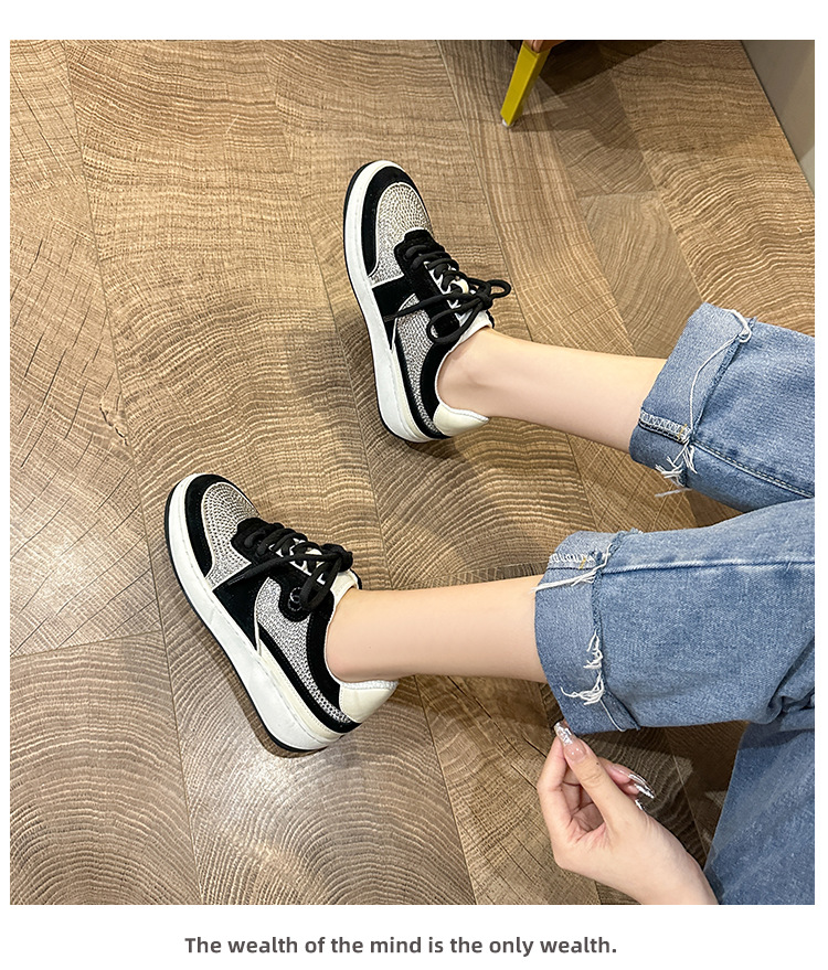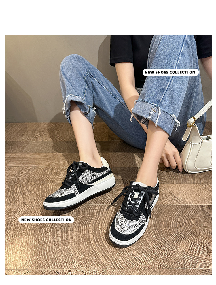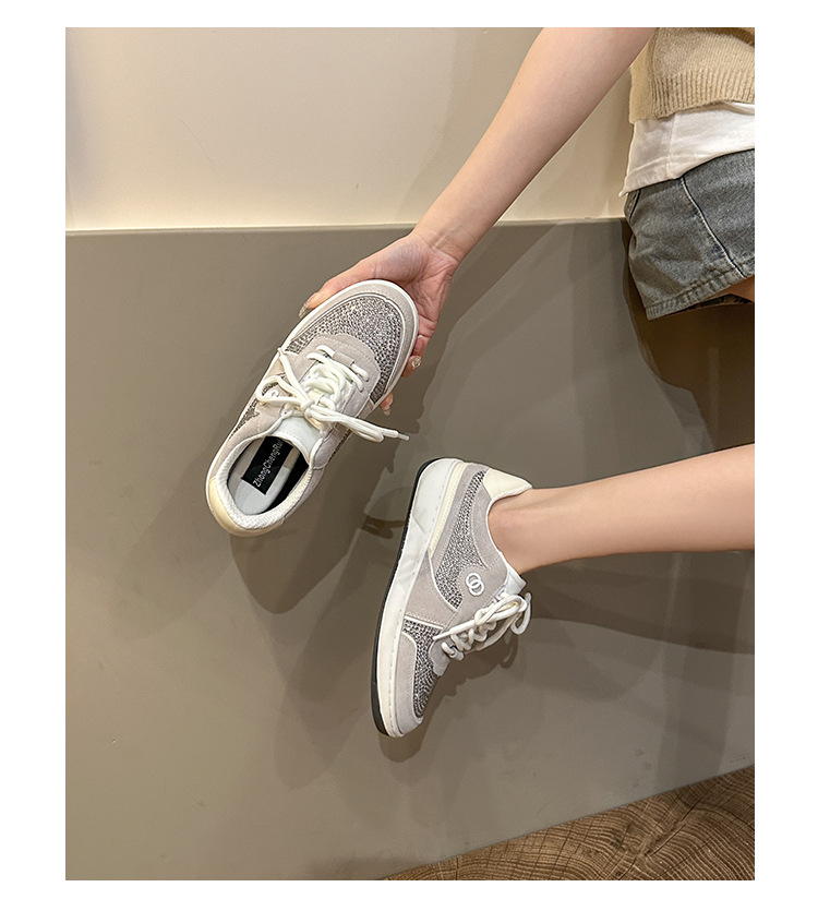 이른 봄 2024 새로운 로우 힐 플랫 플랫폼 레이스 업 밝은 다이아몬드 라운드 토 캐주얼 스포츠 운동화 싱글 레이어 신발스토어 가기