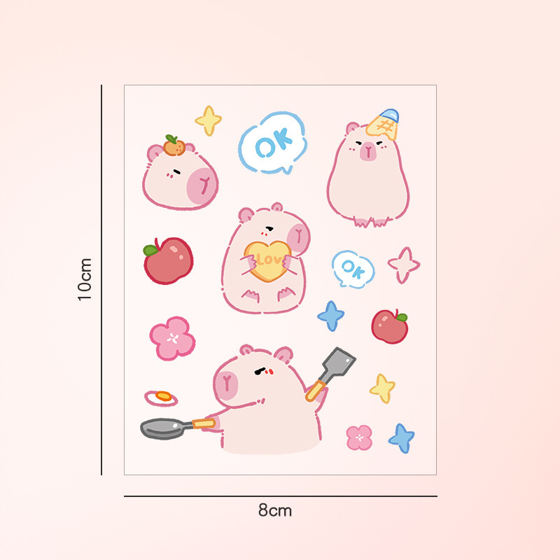 귀여운 카피바라 스티커 핸드북 PET 방수 장식 재료 카피바라 스티커 만화 소녀 어린이 구카