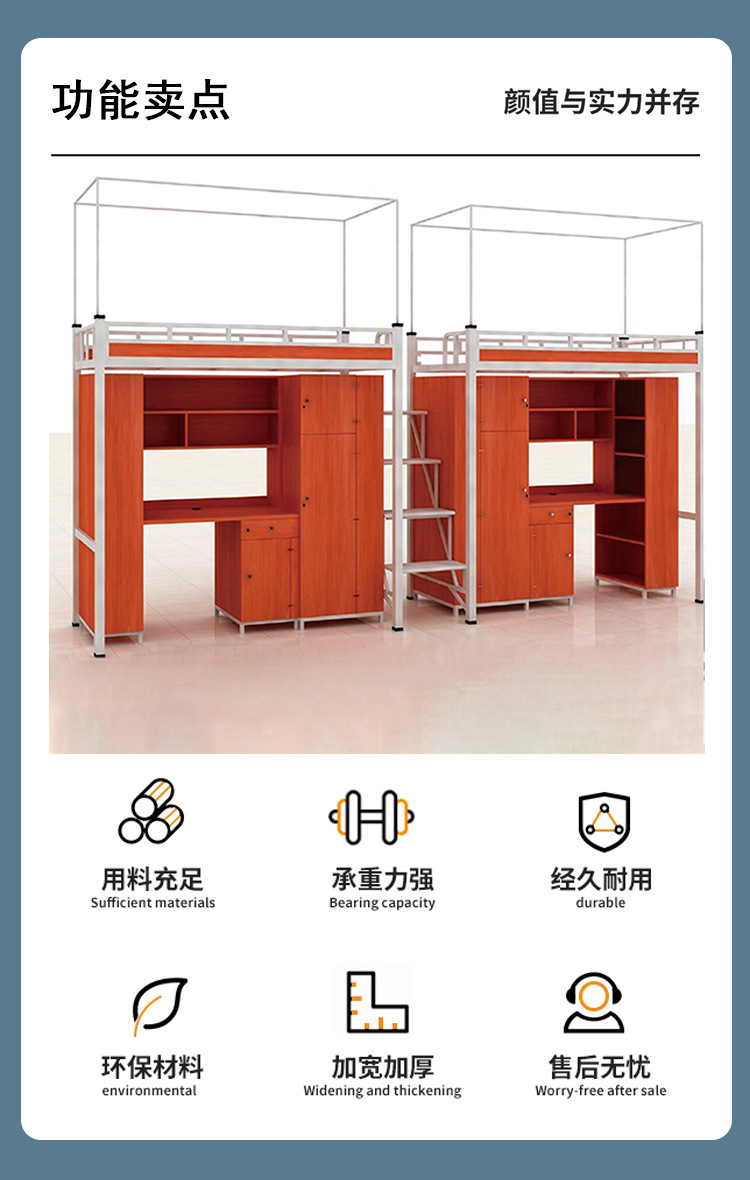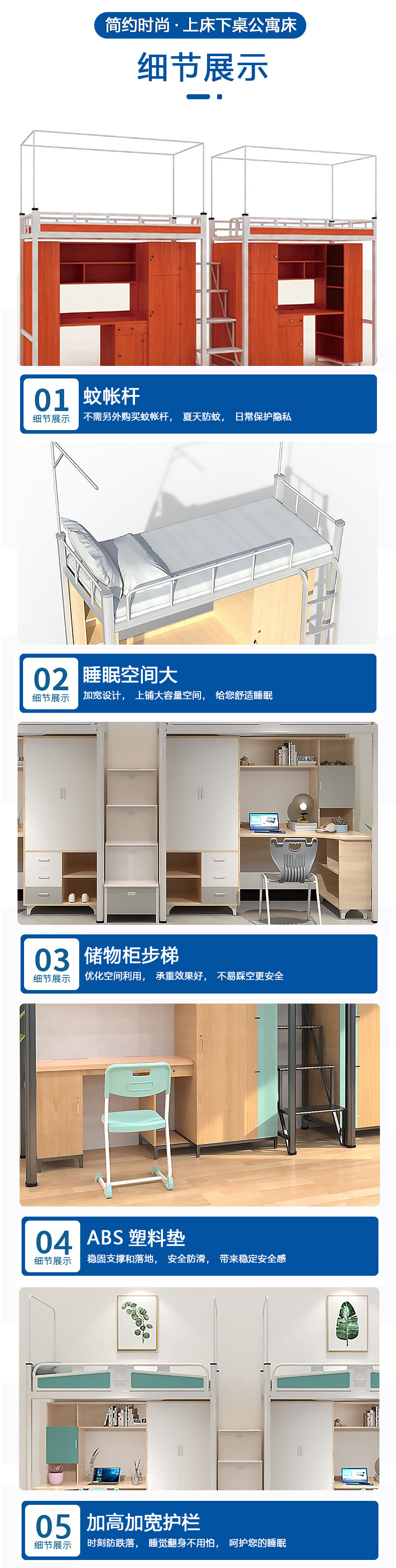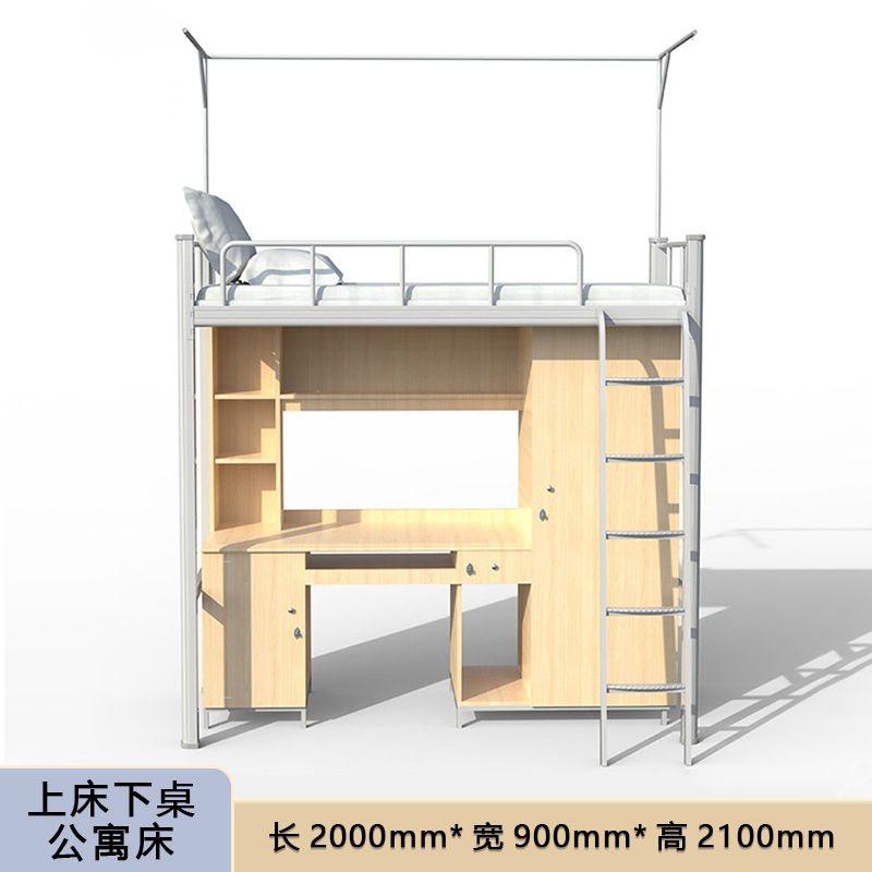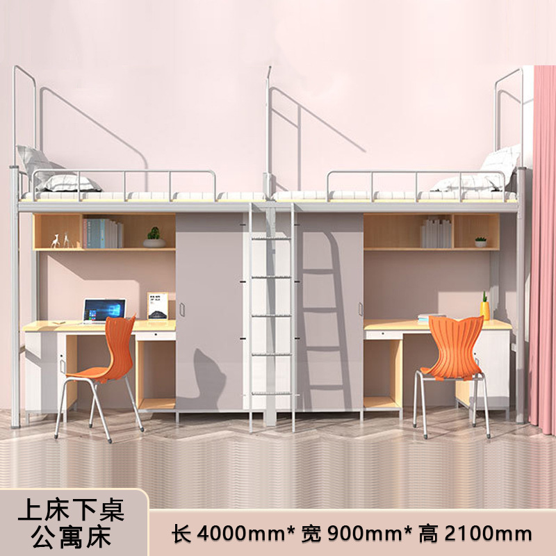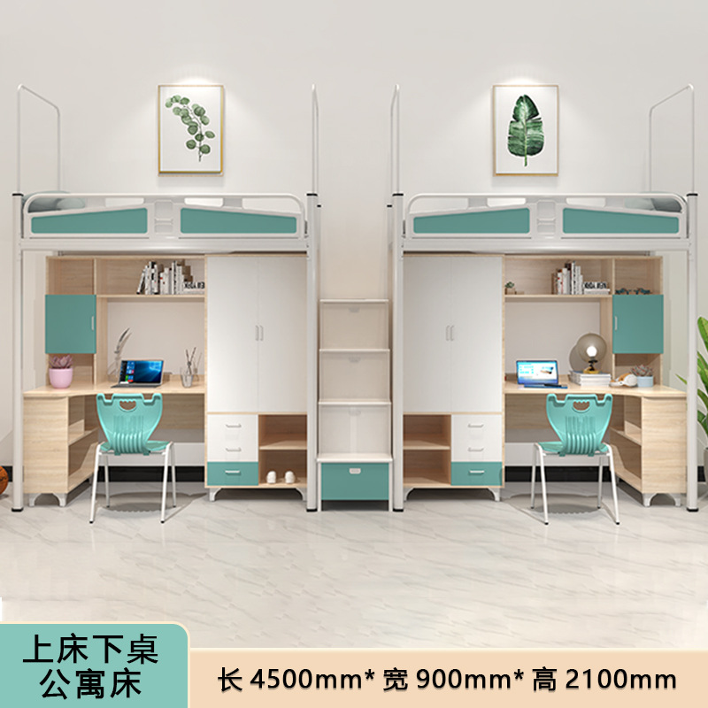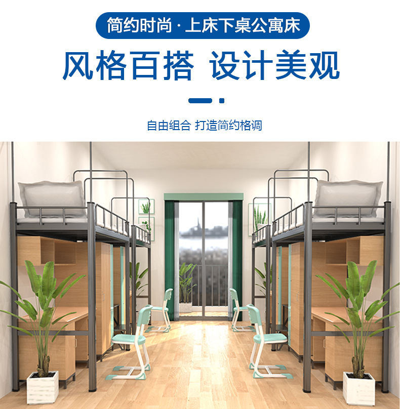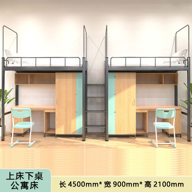 대학생 기숙사 침대 및 하부 테이블 통합 침대 아파트 침대 상부 및 하부 이층 이중층 높고 낮은 침대 철 침대스토어 가기