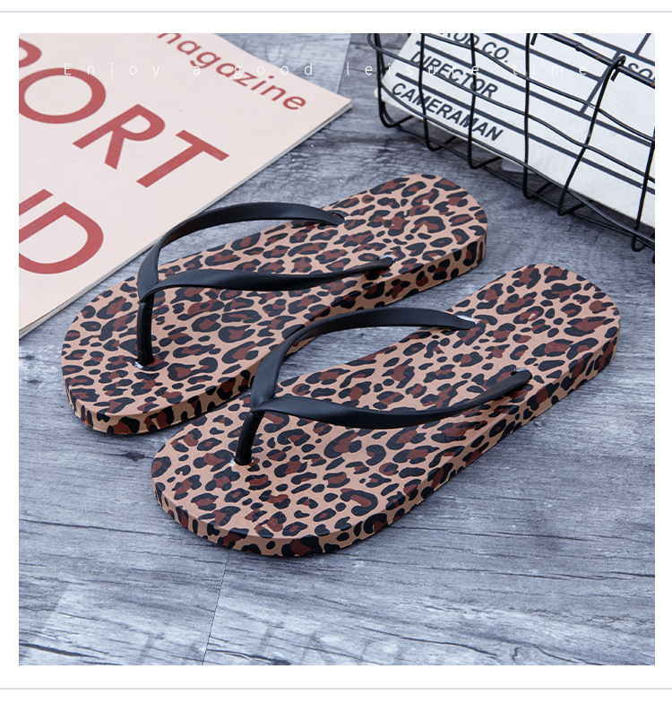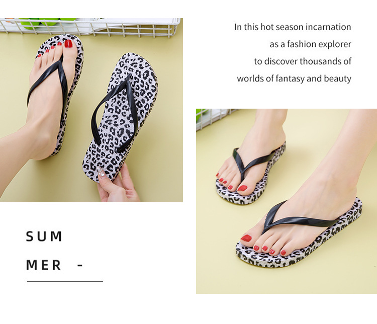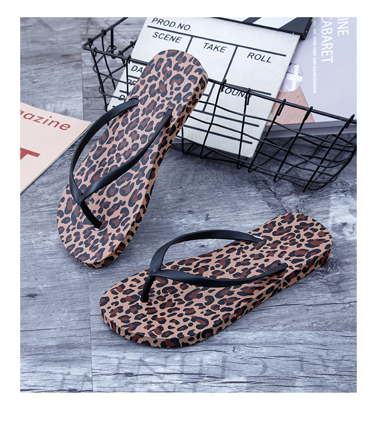 인기있는 여름 새로운 플랫 패션 레오파드 무늬 플립 플롭 여성의 미끄럼 방지 플라스틱 야외 비치 플립 플롭스토어 가기