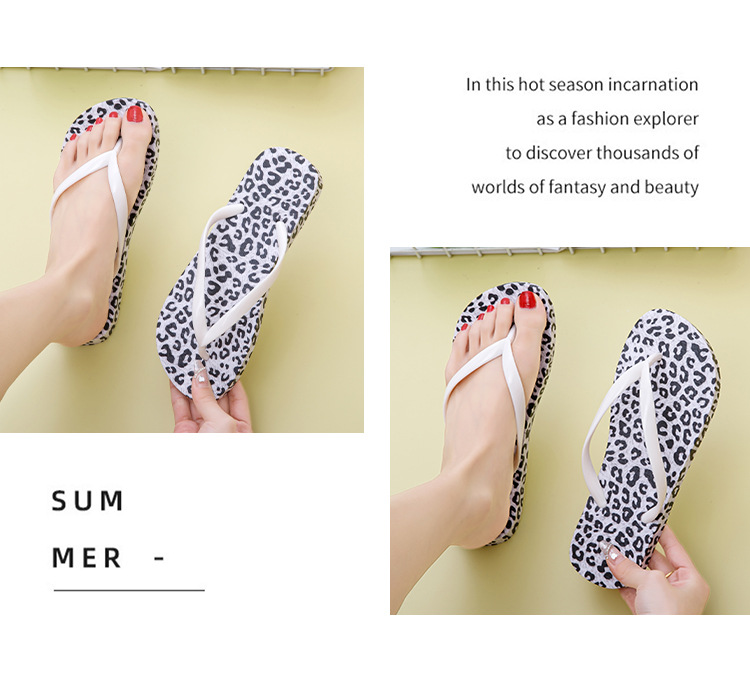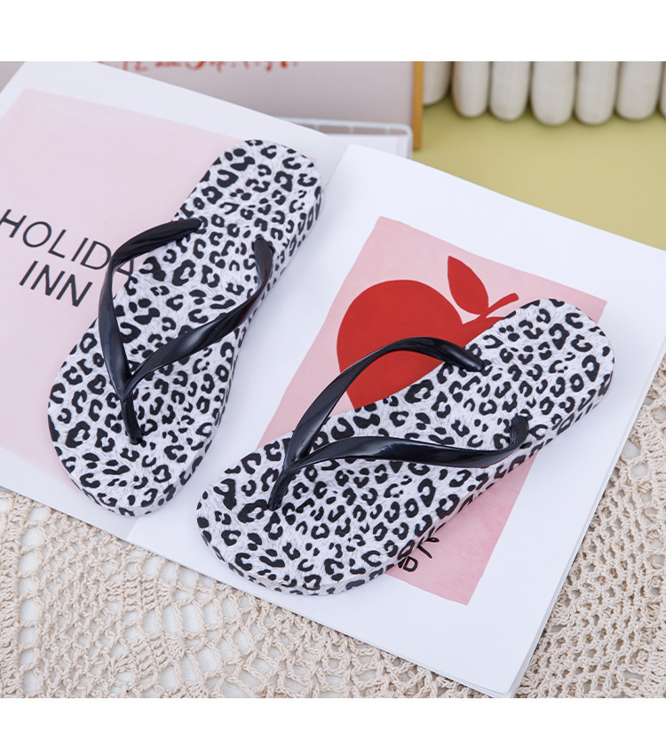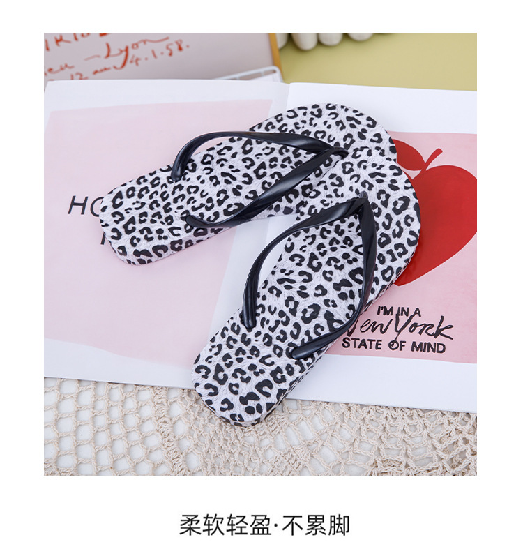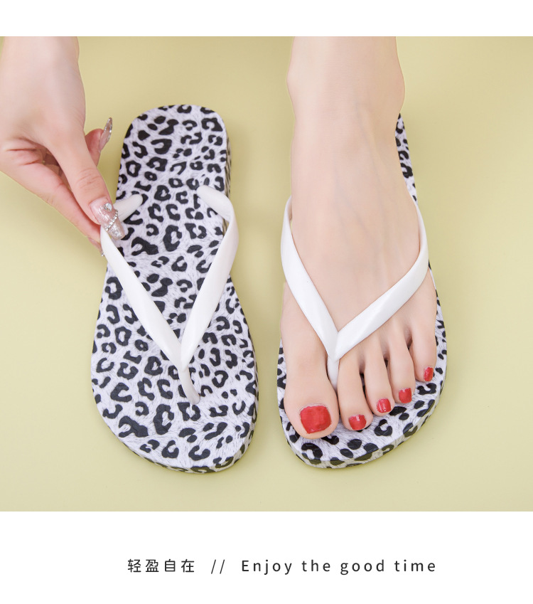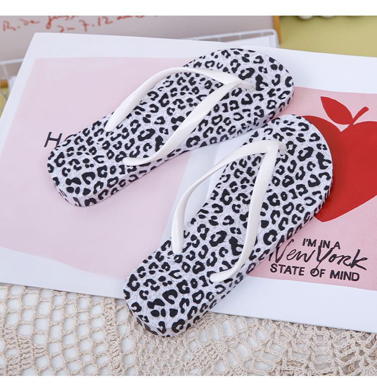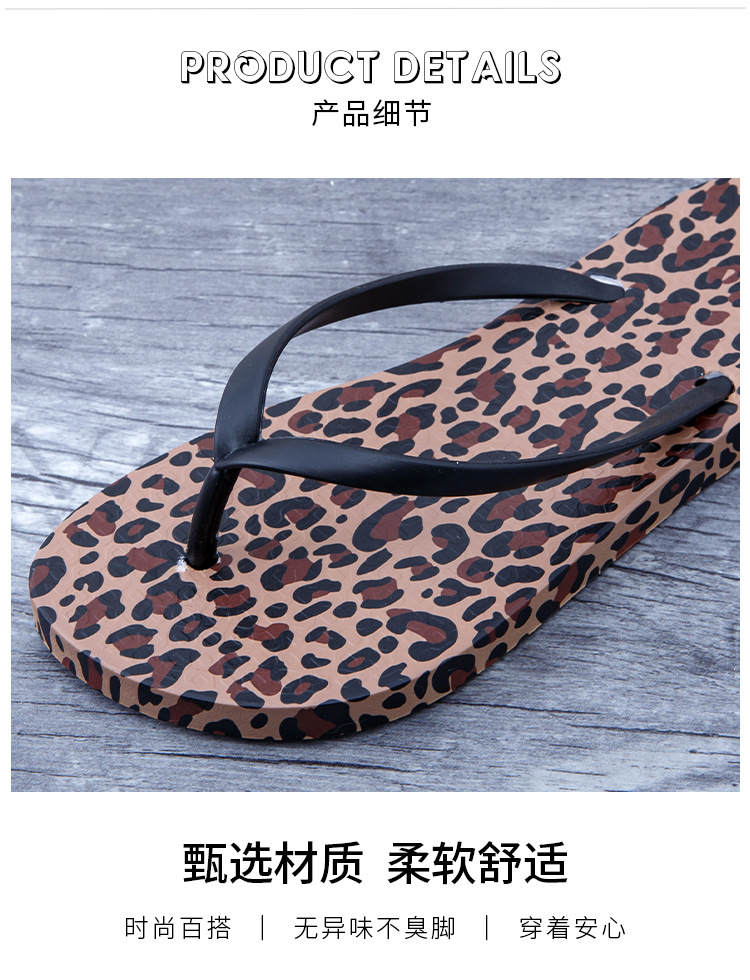 인기있는 여름 새로운 플랫 패션 레오파드 무늬 플립 플롭 여성의 미끄럼 방지 플라스틱 야외 비치 플립 플롭