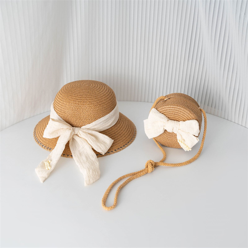 어린이 모자 여름 어부 모자 밀짚 모자 가방 투피스 세트 서양식 신선한 활 태양 보호 태양 모자