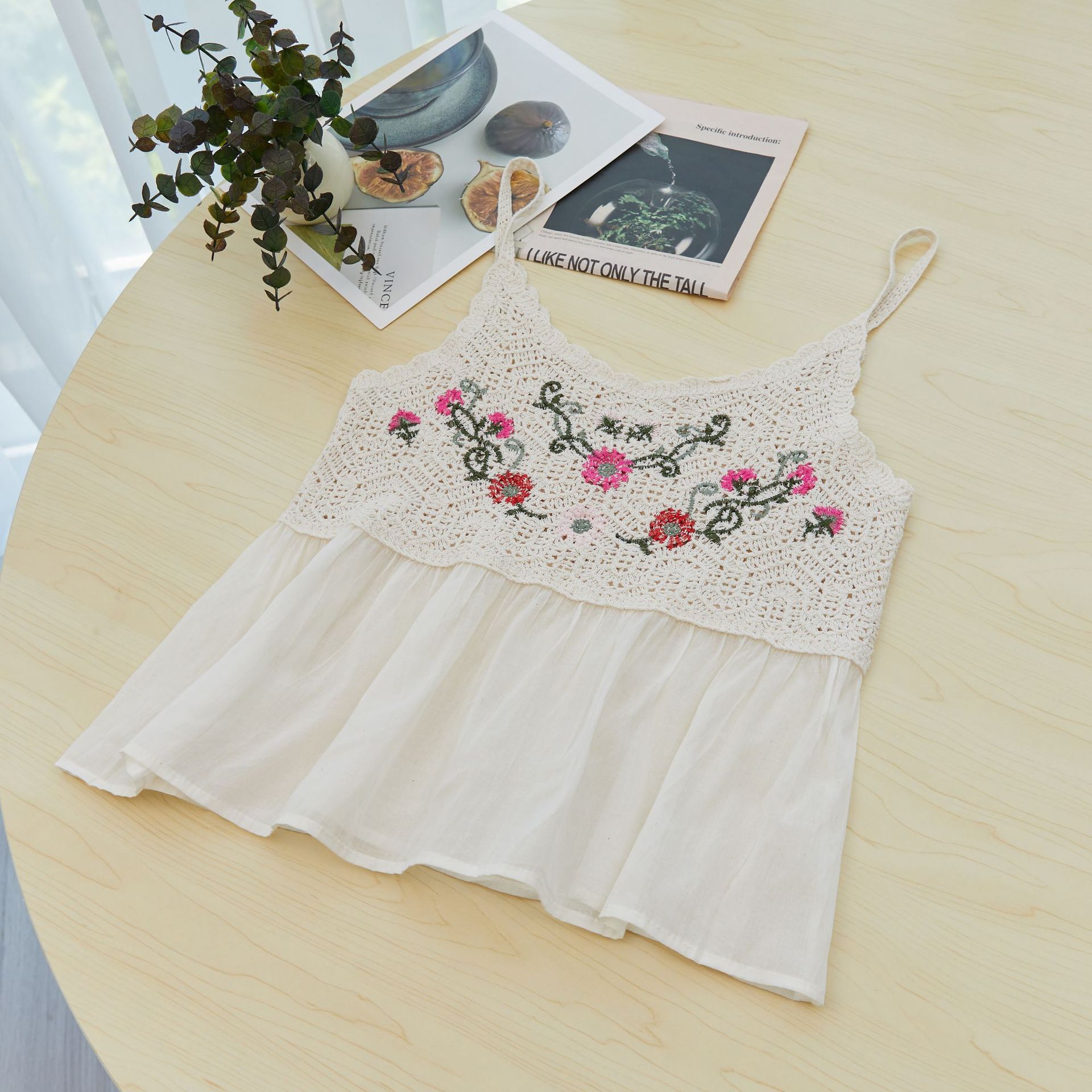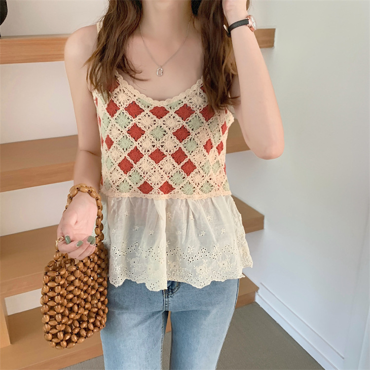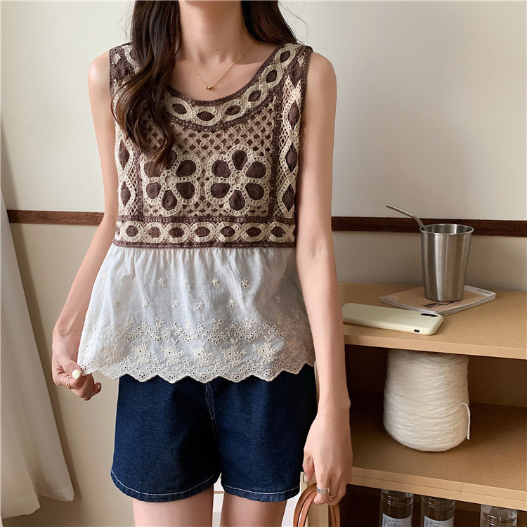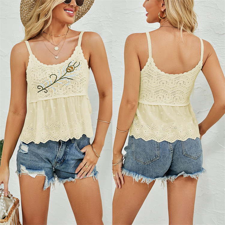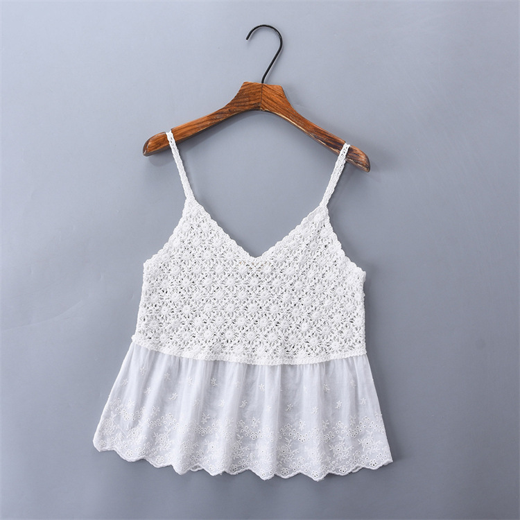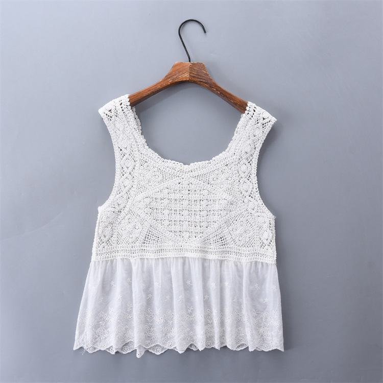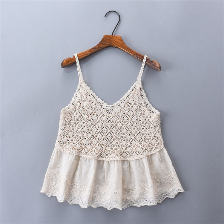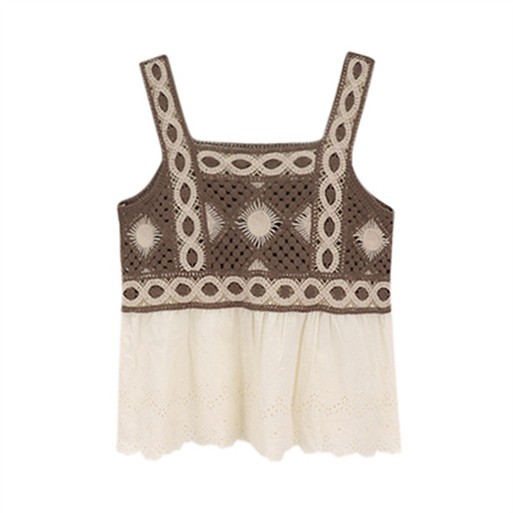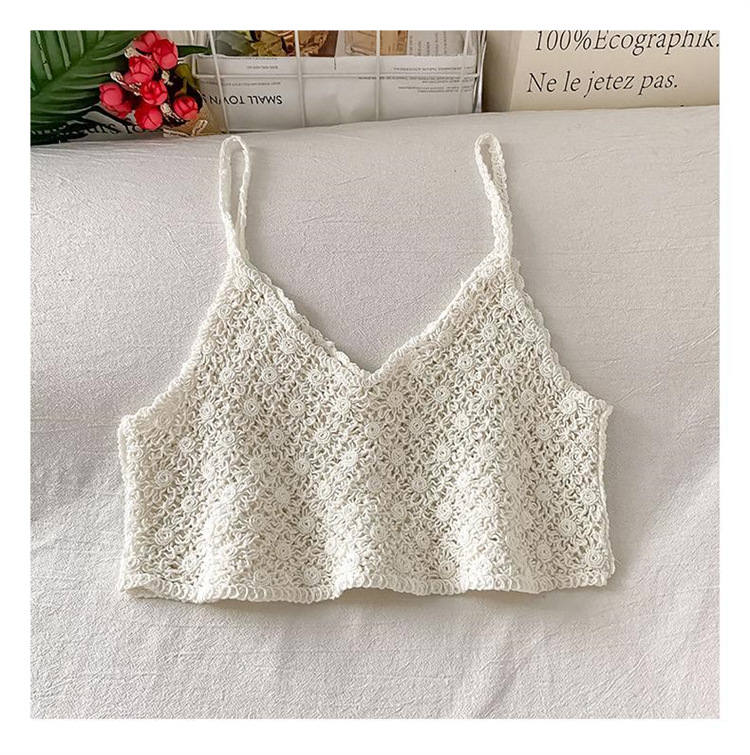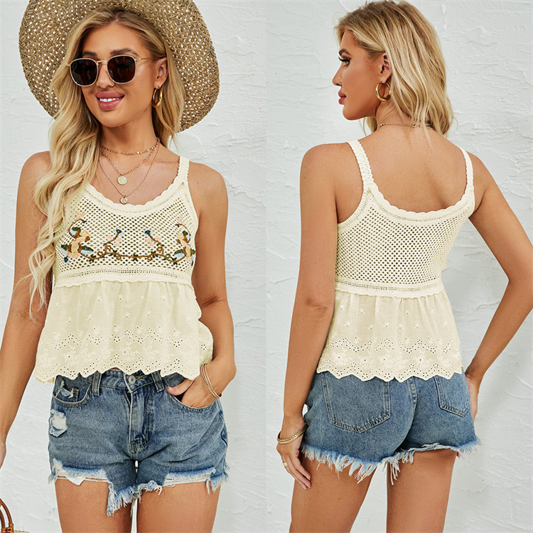 수 놓은 속이 빈 니트 캐미솔 짧은 내부 여성 민소매 최고의 새로운 보헤미안 민족 스타일