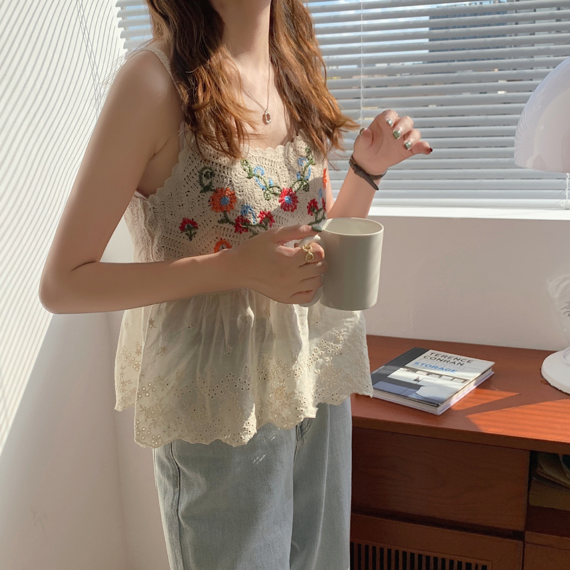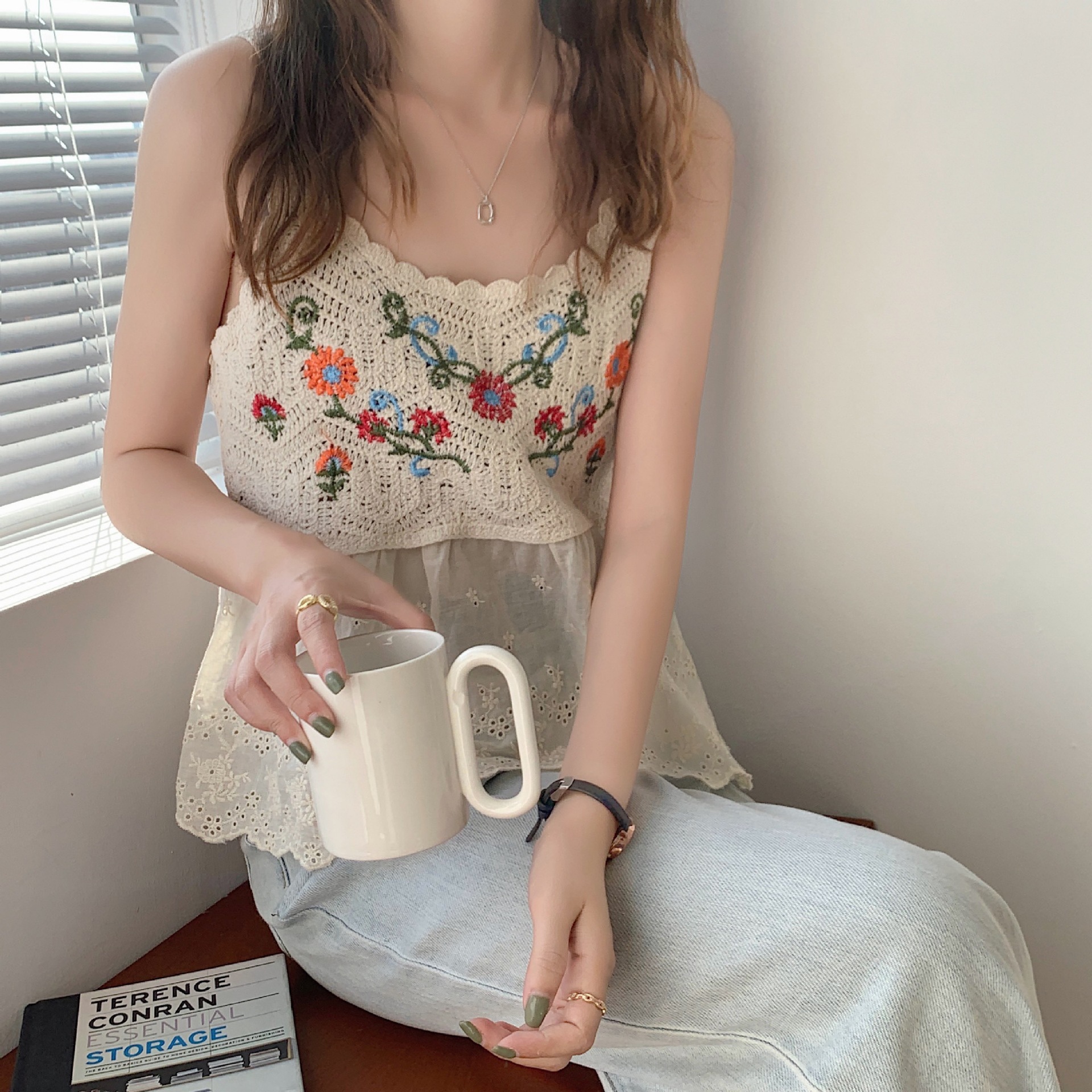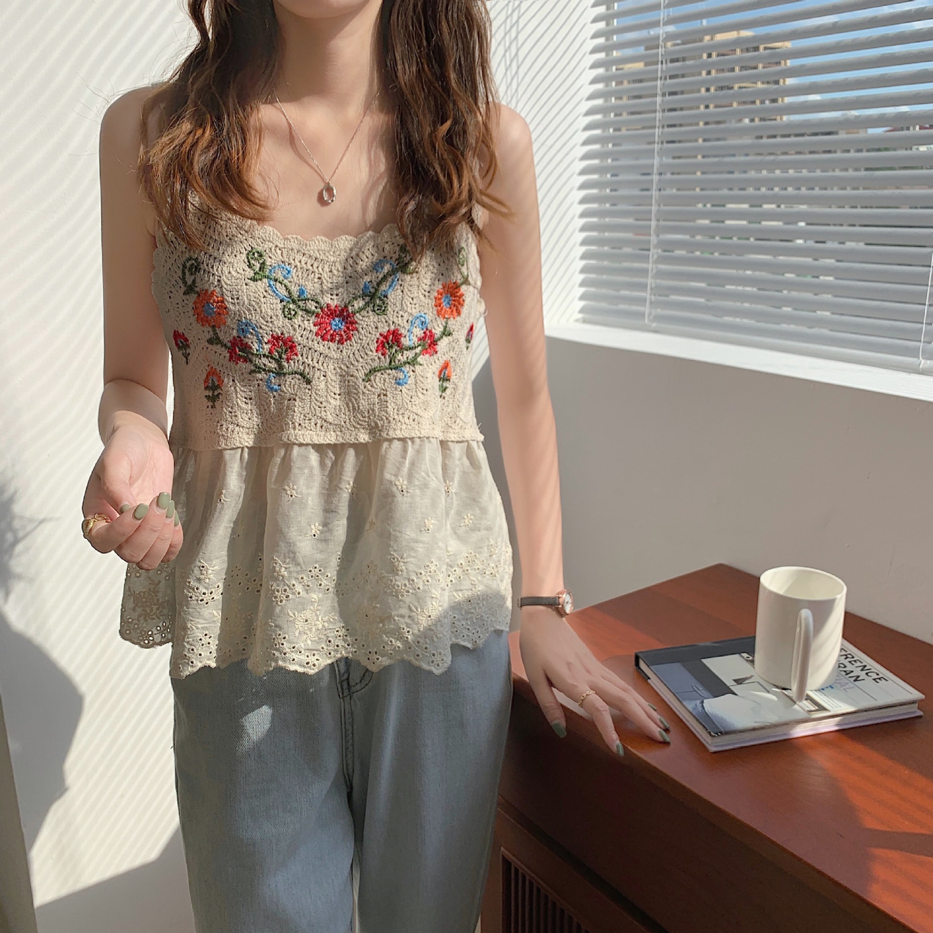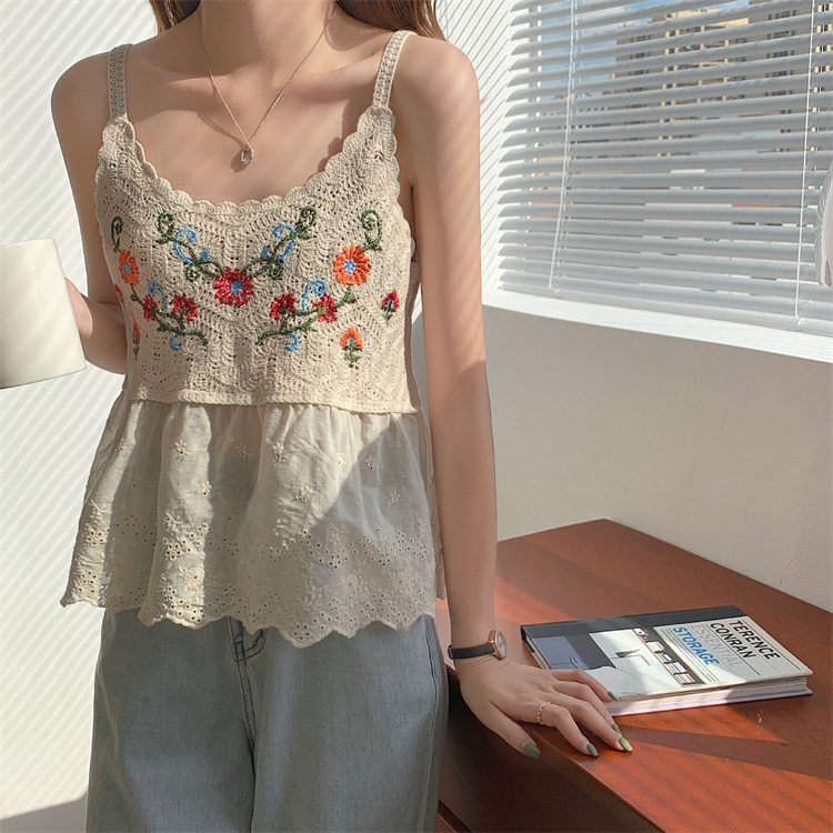 수 놓은 속이 빈 니트 캐미솔 짧은 내부 여성 민소매 최고의 새로운 보헤미안 민족 스타일스토어 가기
