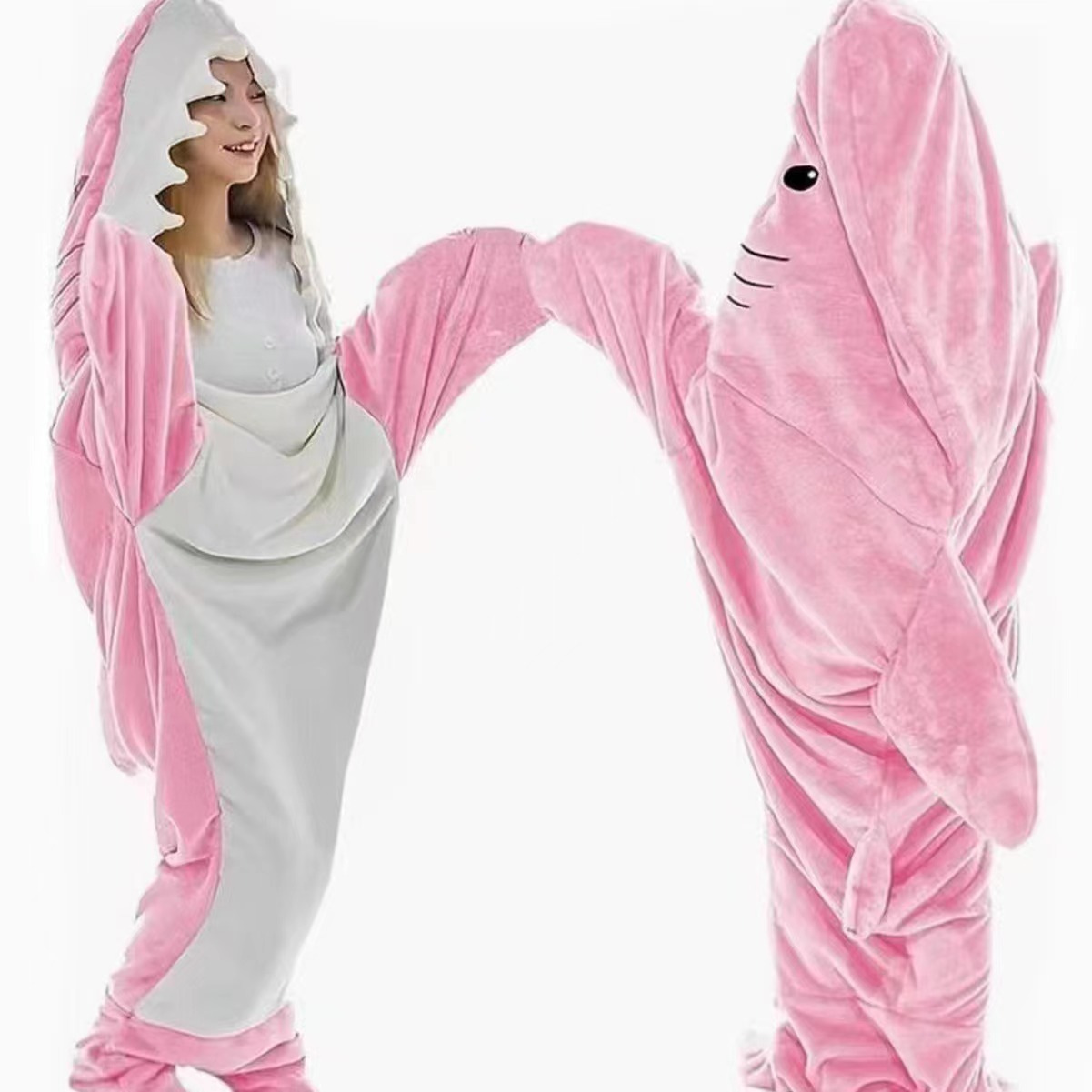 만화 모래 조각 상어 침낭 원피스 잠옷 플란넬 상어 홈 착용 원피스 상어 여름 침낭