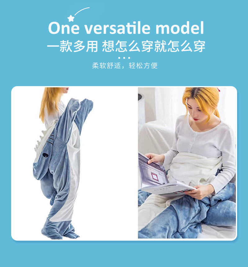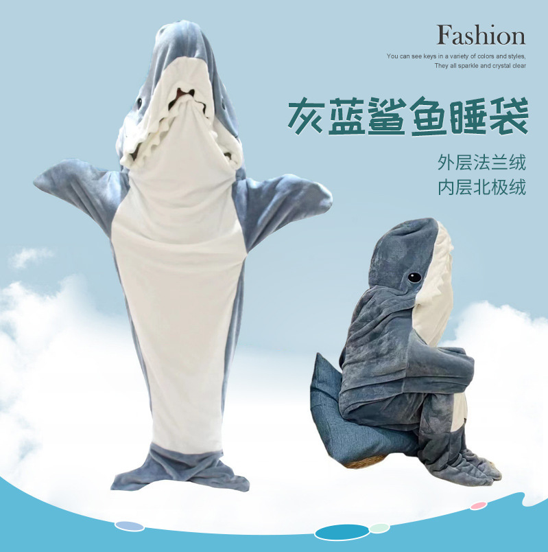 만화 모래 조각 상어 침낭 원피스 잠옷 플란넬 상어 홈 착용 원피스 상어 여름 침낭스토어 가기