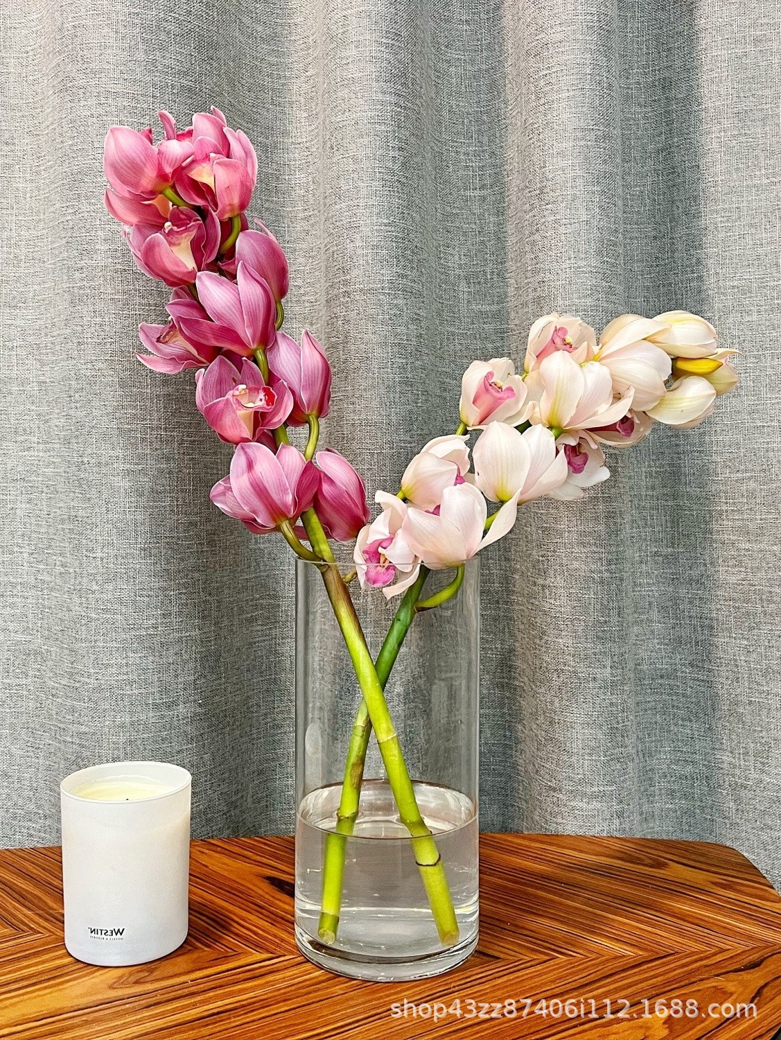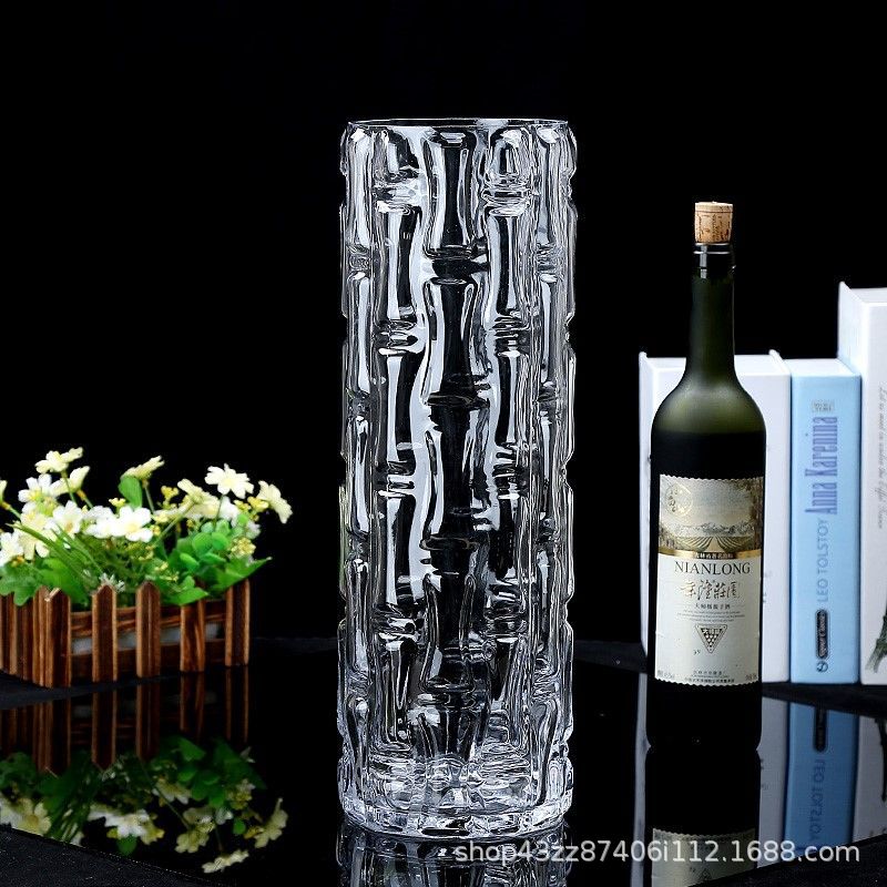 Fugui 대나무 투명 원조 스트레이트 수경 꽃병 부티크 드래곤 대나무 꽃병 물고기 탱크 수직 실린더 유리 꽃병