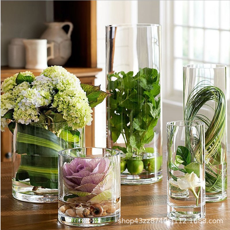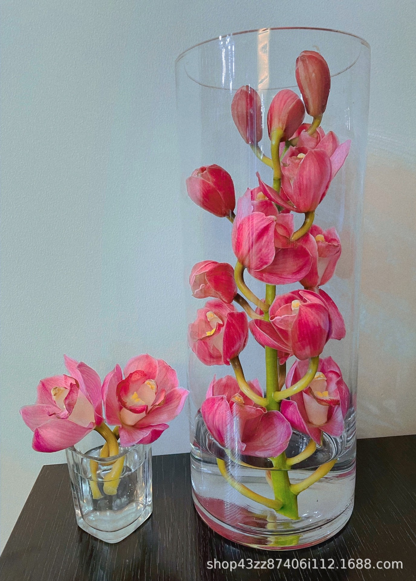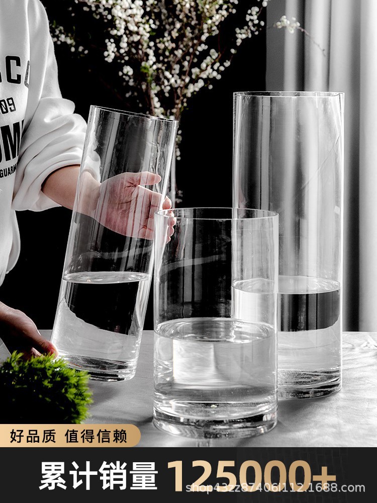 Fugui 대나무 투명 원조 스트레이트 수경 꽃병 부티크 드래곤 대나무 꽃병 물고기 탱크 수직 실린더 유리 꽃병스토어 가기