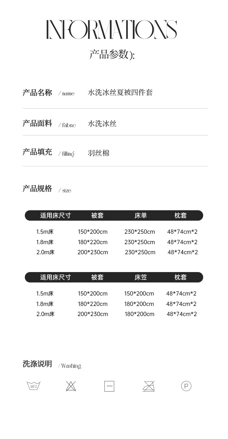 • 150x200cm 여름 이불 장착 시트 4 피스 세트 [시트 180*200]]