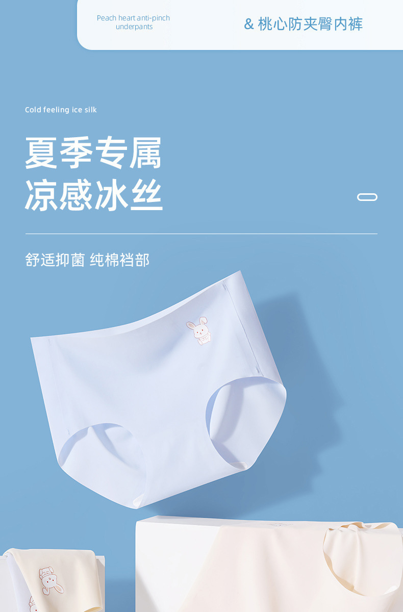 원활한 아이스 실크 속옷 여성의 여름 얇은 면 항균 미드 허리 엉덩이 들어 올리는 엉덩이 클립 요가 피치 힙합 소녀스토어 가기