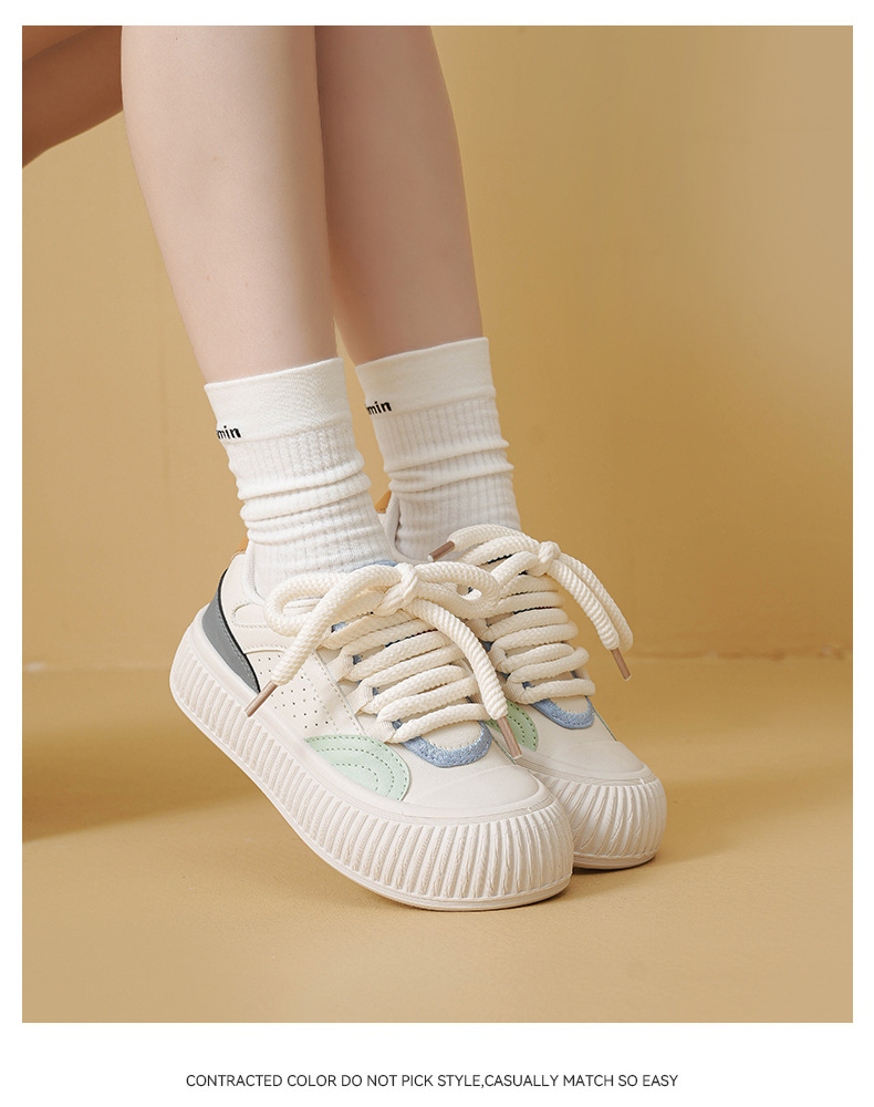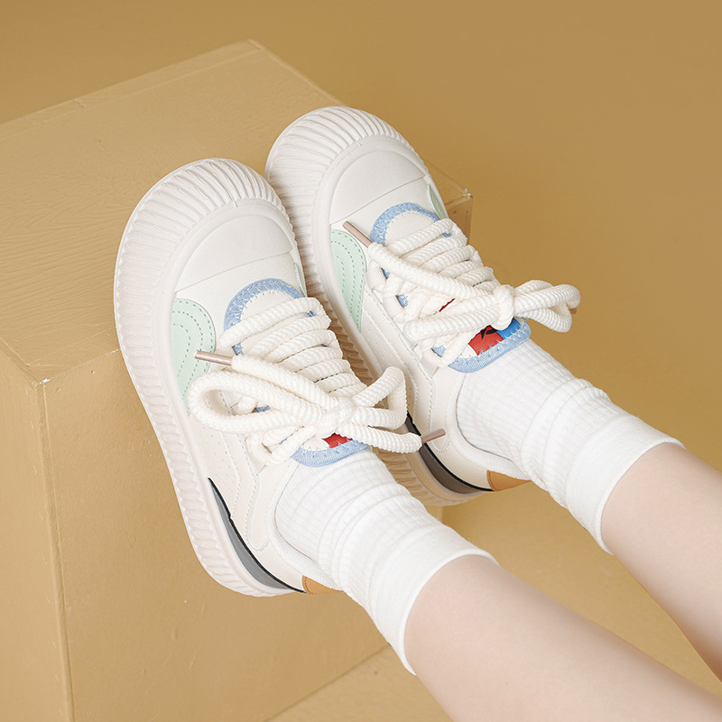 2024 봄 새로운 작은 흰색 신발 한국 여자 학생 두꺼운 밑창 높이 증가 스포츠 보드 신발 캐주얼 거리 촬영 XT90스토어 가기