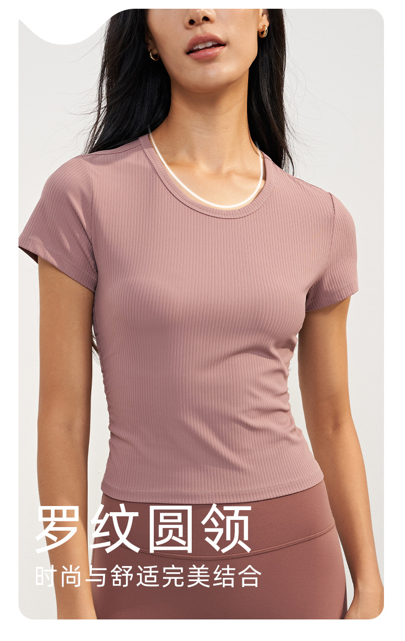 룰루 봄/여름 갈비 새로운 느슨한 슬리밍 요가 최고 고급 스포츠 티셔츠 라운드 넥 피트니스 반팔 여성스토어 가기
