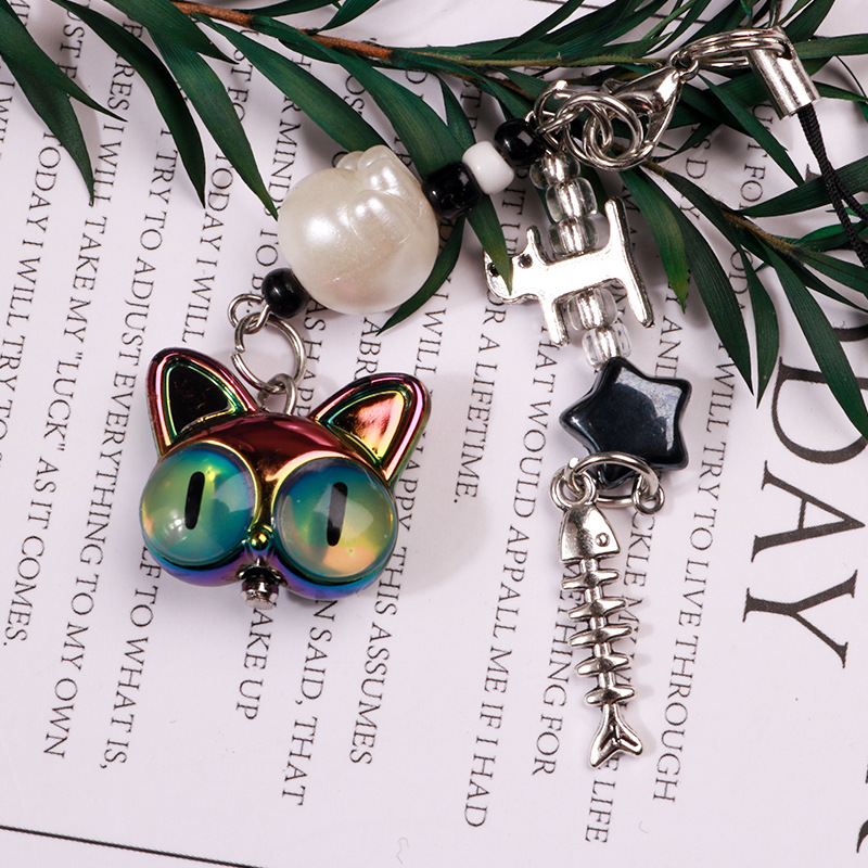 새로운 귀여운 귀여운 컬러 도금 커플의 큰 눈 고양이 휴대 전화 가방 조립 아크릴 합금 펜던트 키 체인스토어 가기
