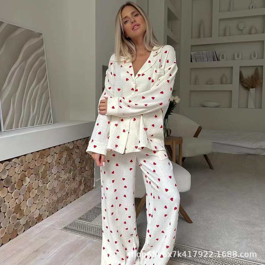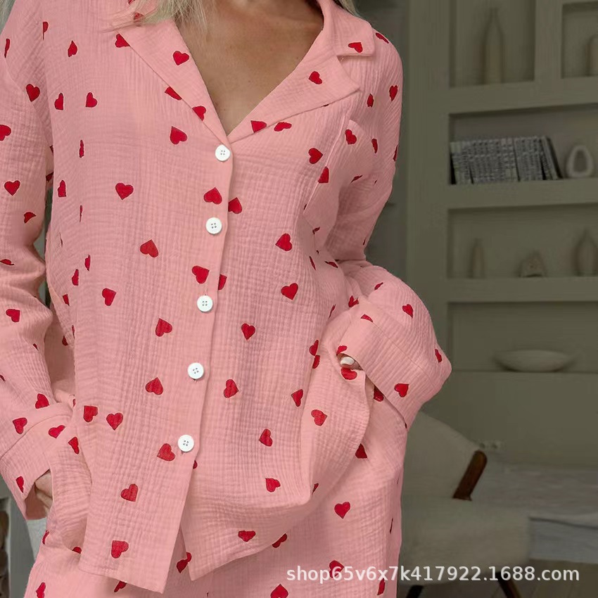 2024 유럽과 미국 국경 아마존 대외 무역 여성의 사랑 인쇄 세트 칼라 코트 패션 스포츠 레저 세트스토어 가기