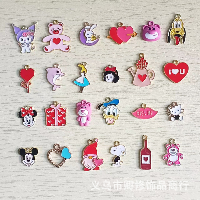 귀여운 만화 합금 떨어지는 오일 애니메이션 미키 마우스 딸기 곰 DIY 팔찌 목걸이 문구 가방 보석 액세서리