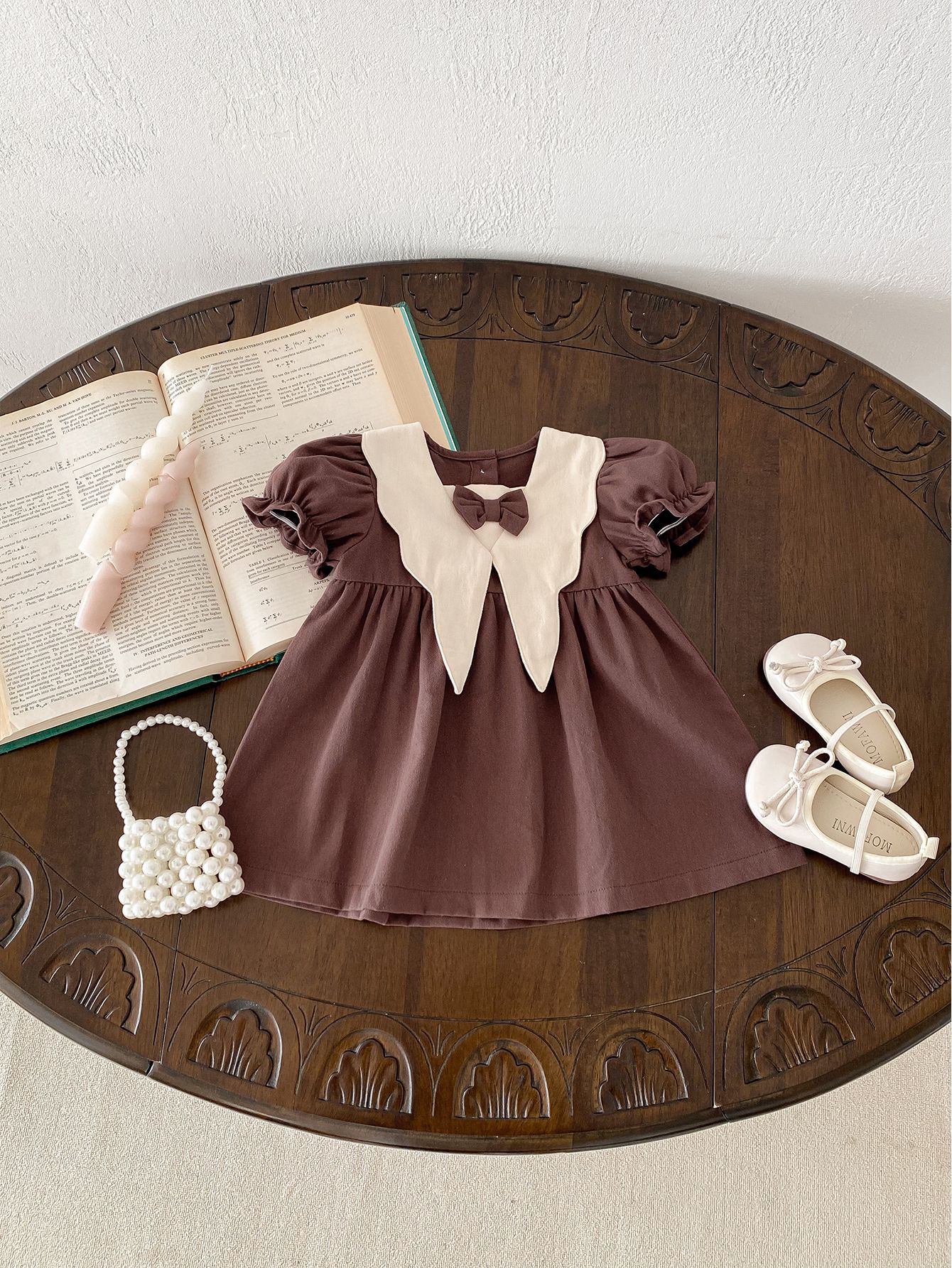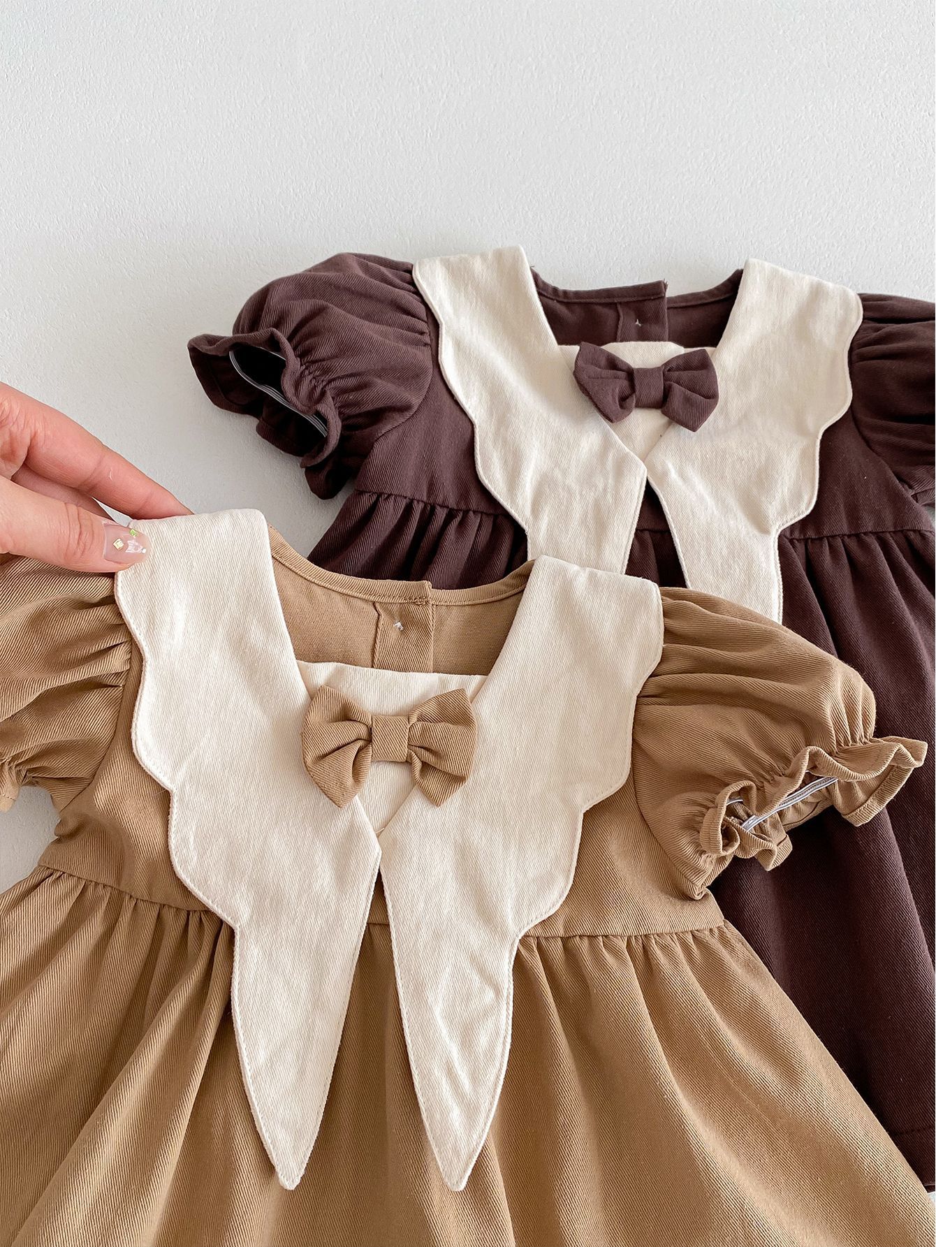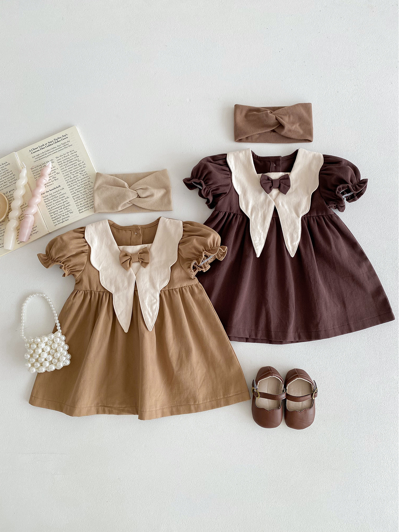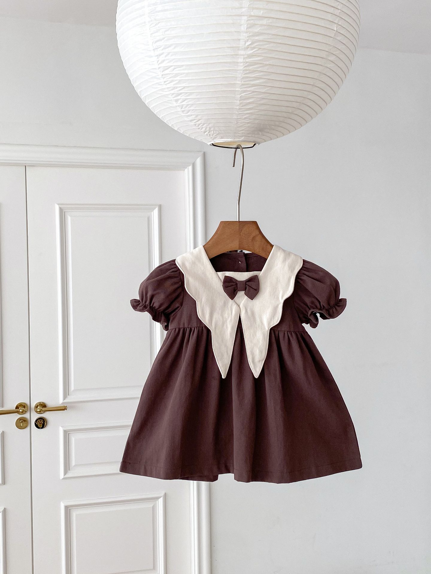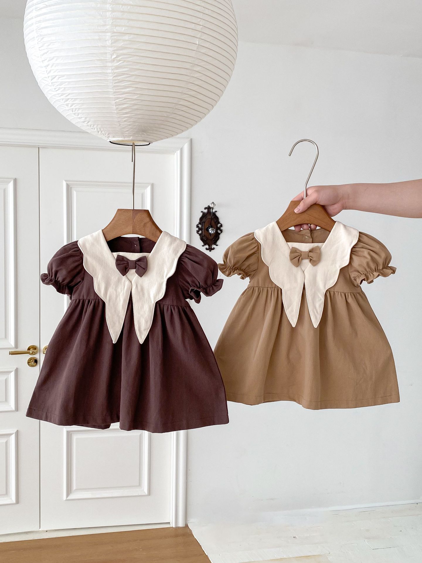 소녀 여름 프레피 스타일 원피스 어린이 여름 슈퍼 서양식 스커트 아기 소녀 인형 칼라 복고풍 공주 원피스스토어 가기