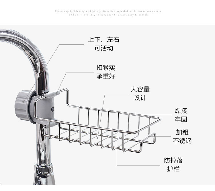 수도꼭지 스토리지 랙 주방 스테인레스 스틸 싱크 스토리지 랙 가정용 스폰지 헝겊 식기 세척 배수 랙 교수형 바구니