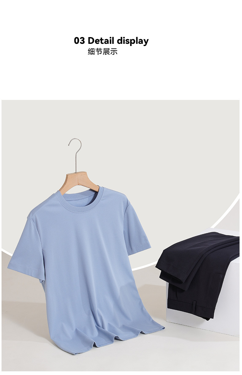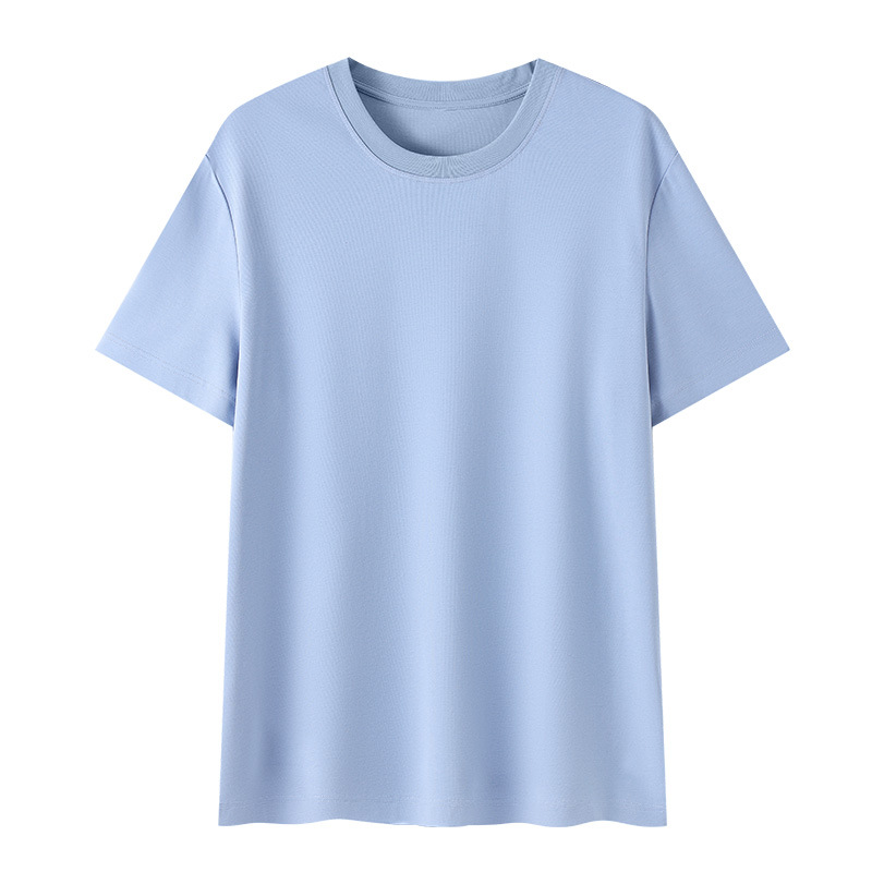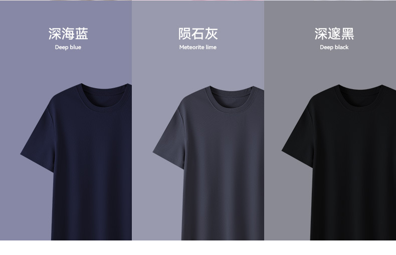 고급 여름용 얇은 아이스 느낌의 액체암모니아 반팔 티셔츠 남성용 슬림핏 단색 고급 아이스 반팔 상의 캐주얼 스타일스토어 가기