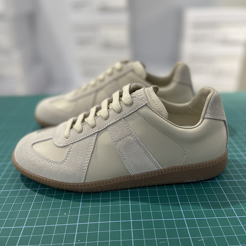 M Gila mm6 여성용 육군 훈련 신발 2025 새로운 1 층 소 가죽 생 고무 밑창 남성과 여성을위한 편안한 캐주얼 운동화스토어 가기