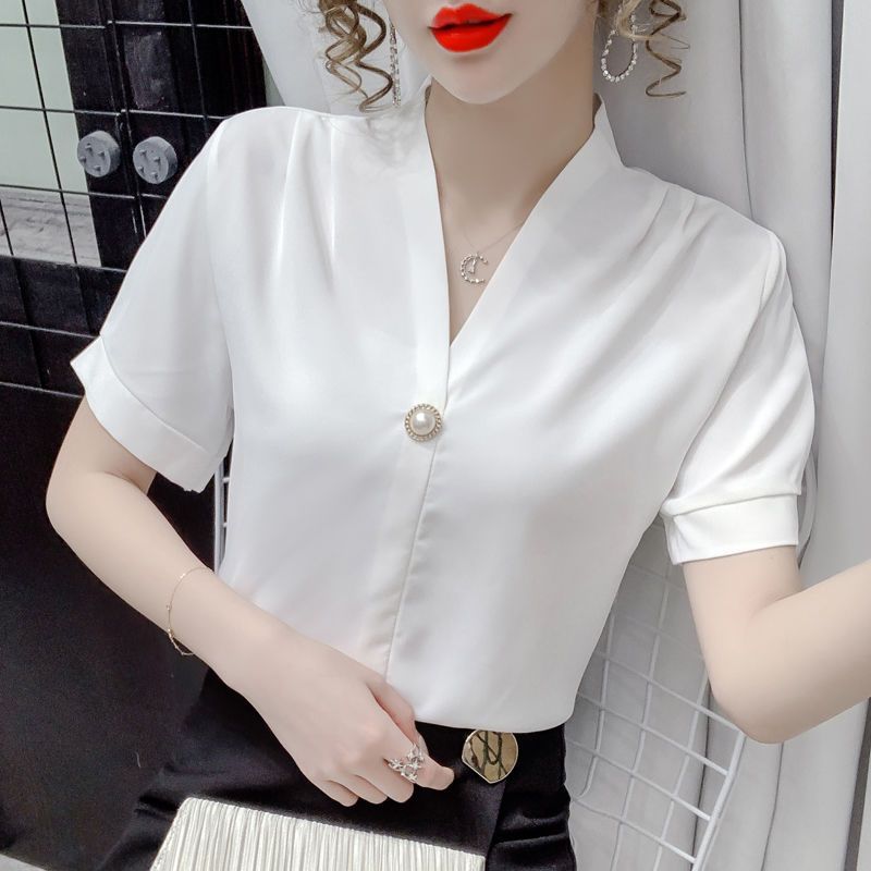 긴 짧은 소매 V 넥 얇은 프랑스 레이스 탑 2024 여름 새로운 패션 프랑스 분위기 탑 셔츠스토어 가기