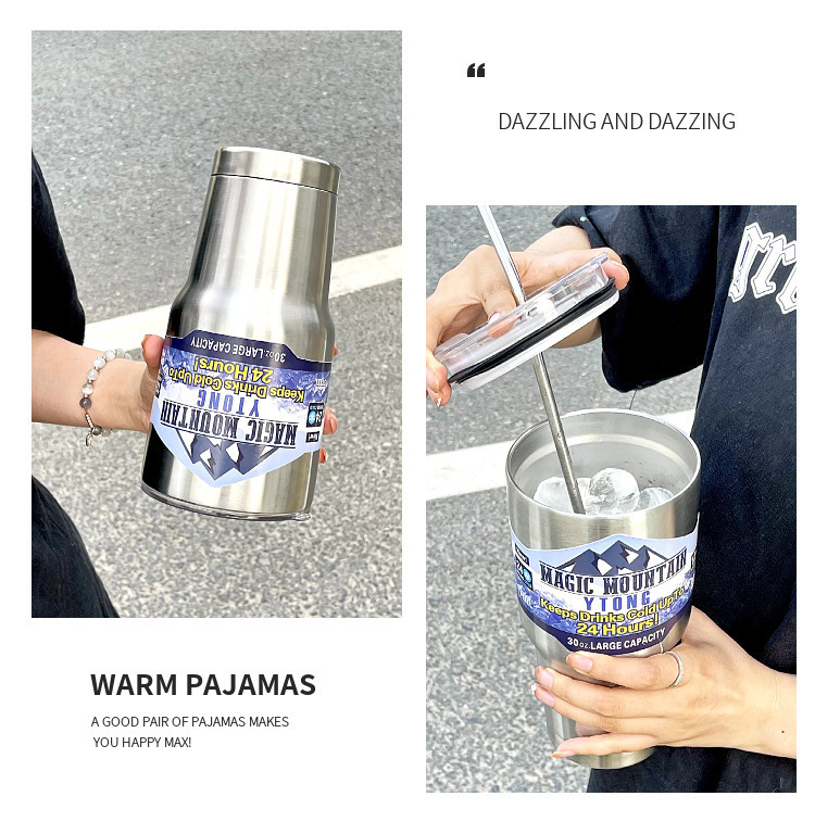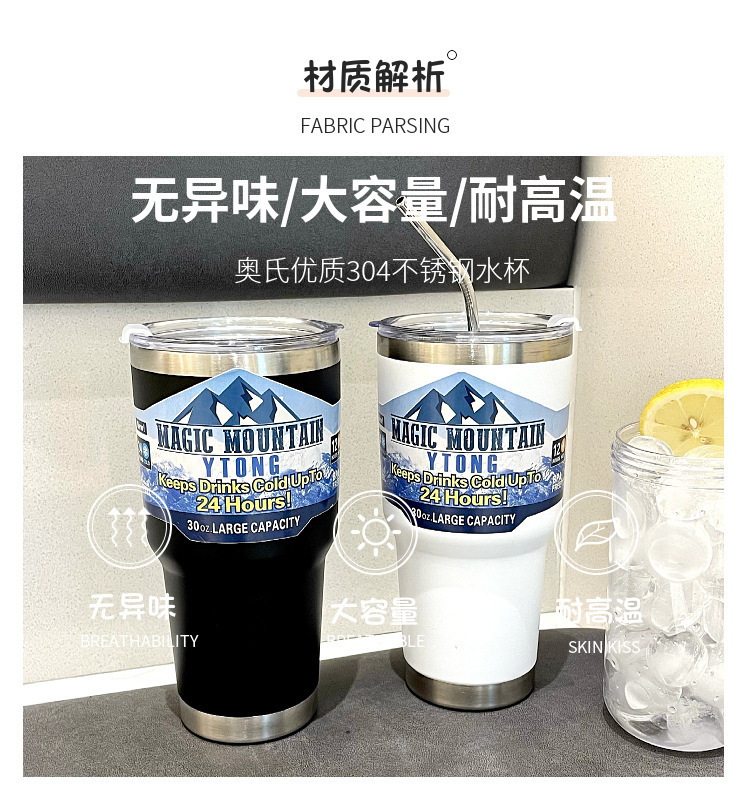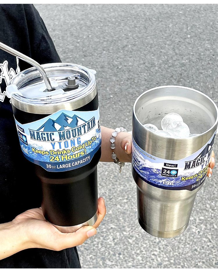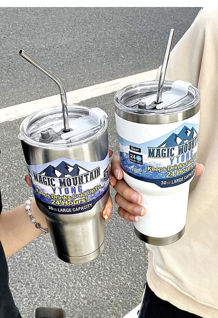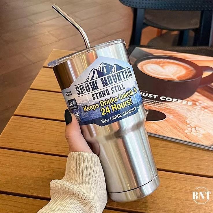국경 간 폭발 30oz 아이스 컵 대용량 304 스테인레스 자동차 보온병 컵 남성과 여성을위한 야외 휴대용 밀짚