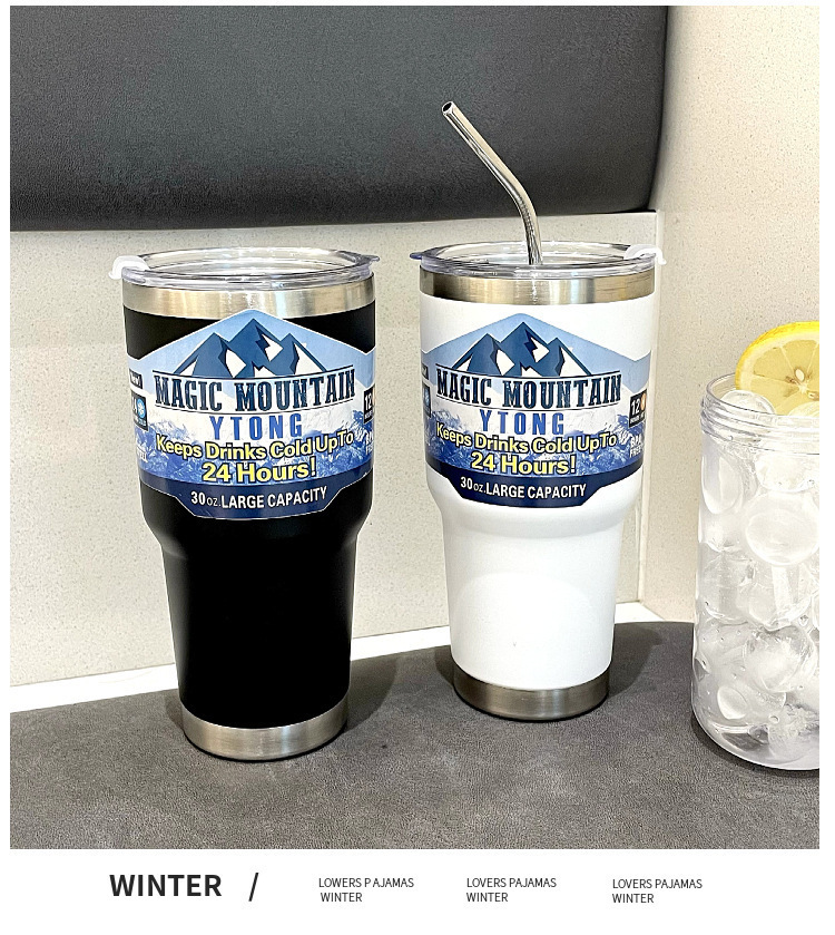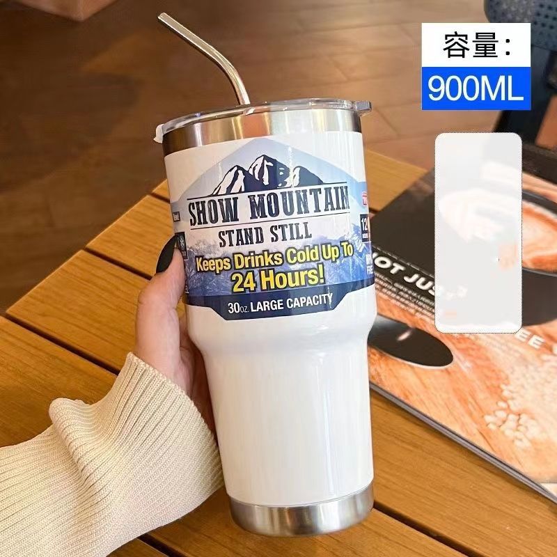 국경 간 폭발 30oz 아이스 컵 대용량 304 스테인레스 자동차 보온병 컵 남성과 여성을위한 야외 휴대용 밀짚스토어 가기