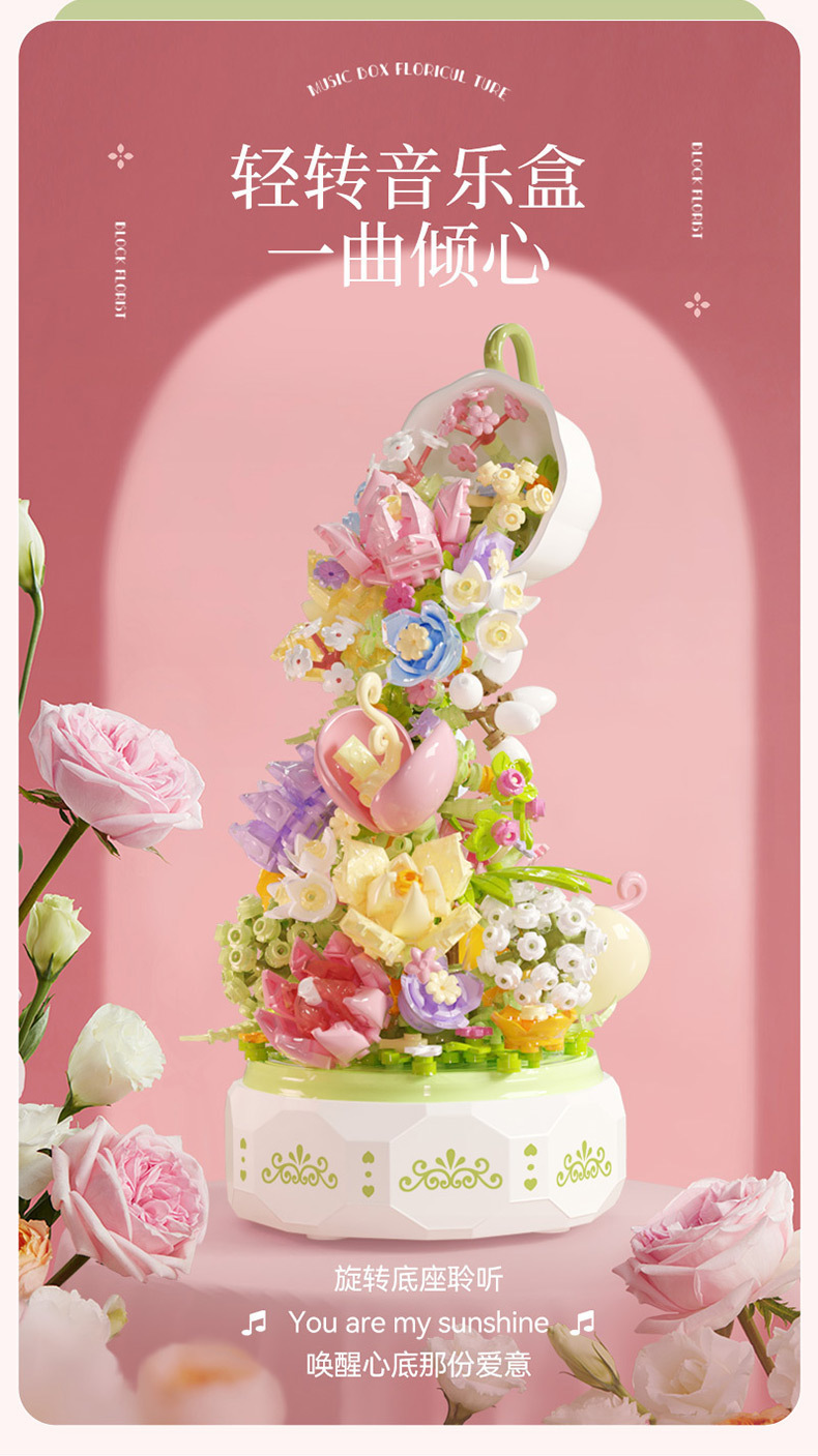 레고 빌딩 블록과 호환되는 센바오 꽃 사각형 꽃 얼굴 차 언어 조명 음악 상자 장식 조립 빌딩 블록 장난감 도매스토어 가기