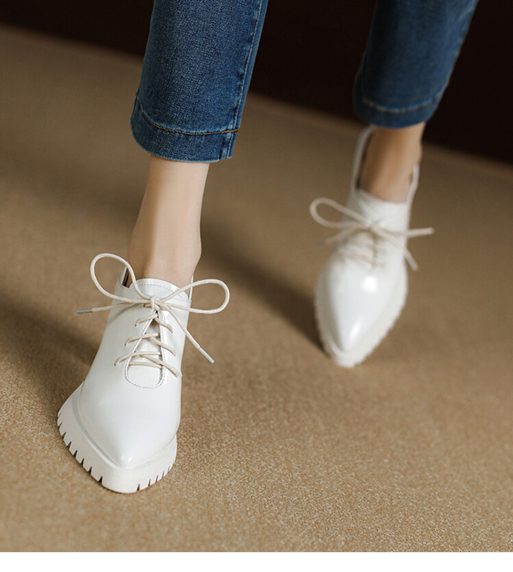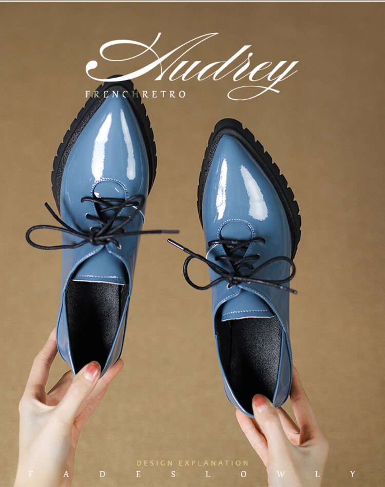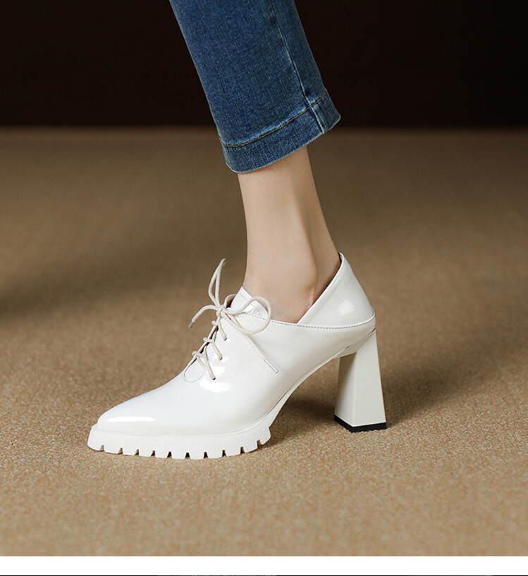 한국 스타일의 세련된 틈새 싱글 레이어 신발 방수 플랫폼 청키 힐 복고풍 하이힐 블랙 가죽 신발 여성용 특허 가죽