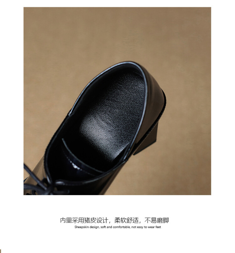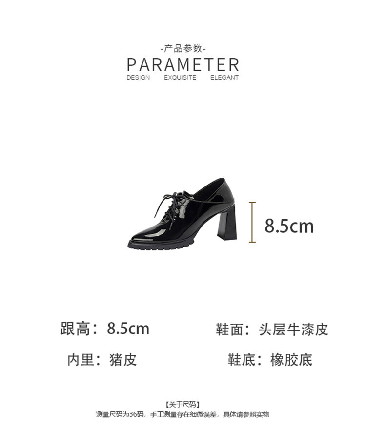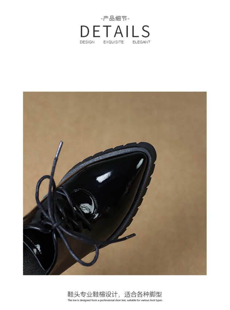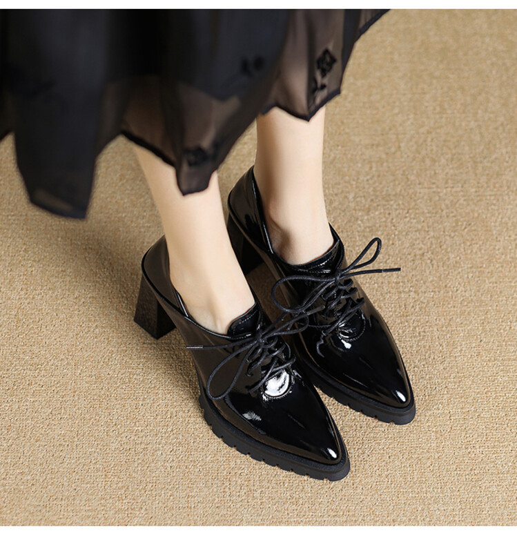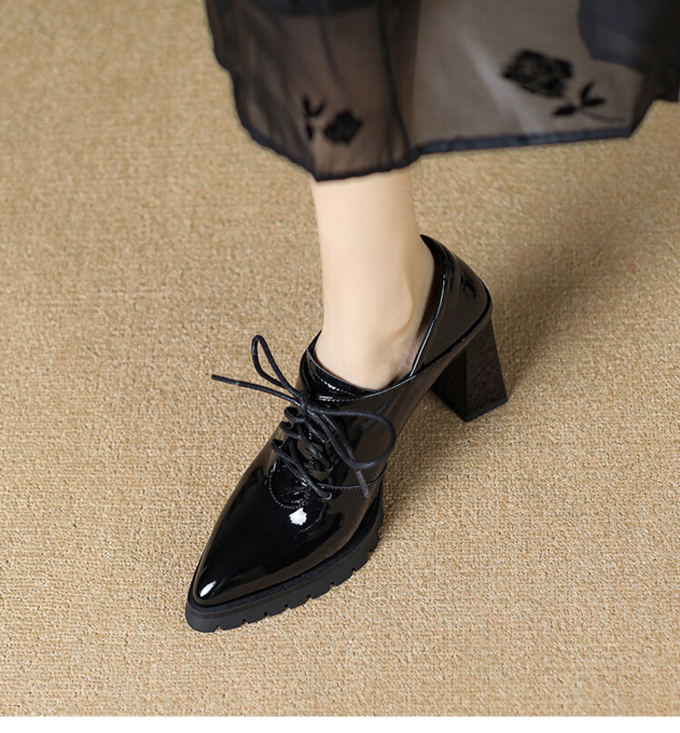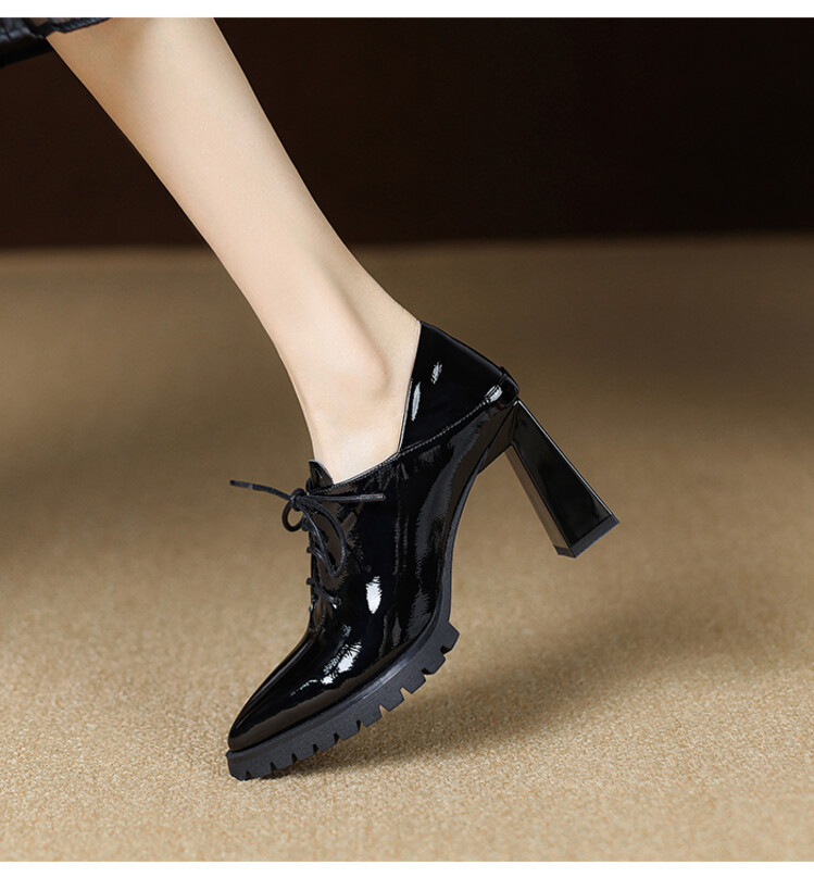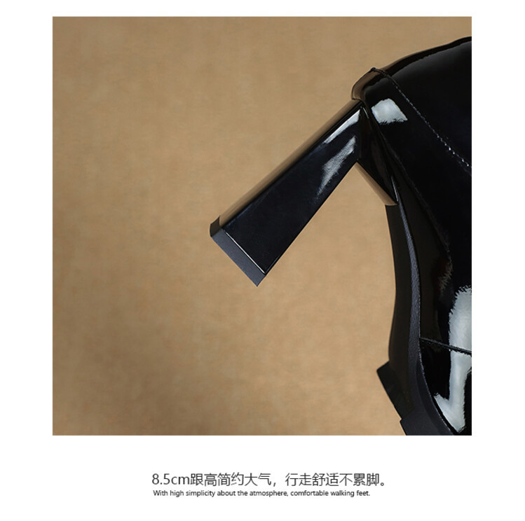 한국 스타일의 세련된 틈새 싱글 레이어 신발 방수 플랫폼 청키 힐 복고풍 하이힐 블랙 가죽 신발 여성용 특허 가죽스토어 가기