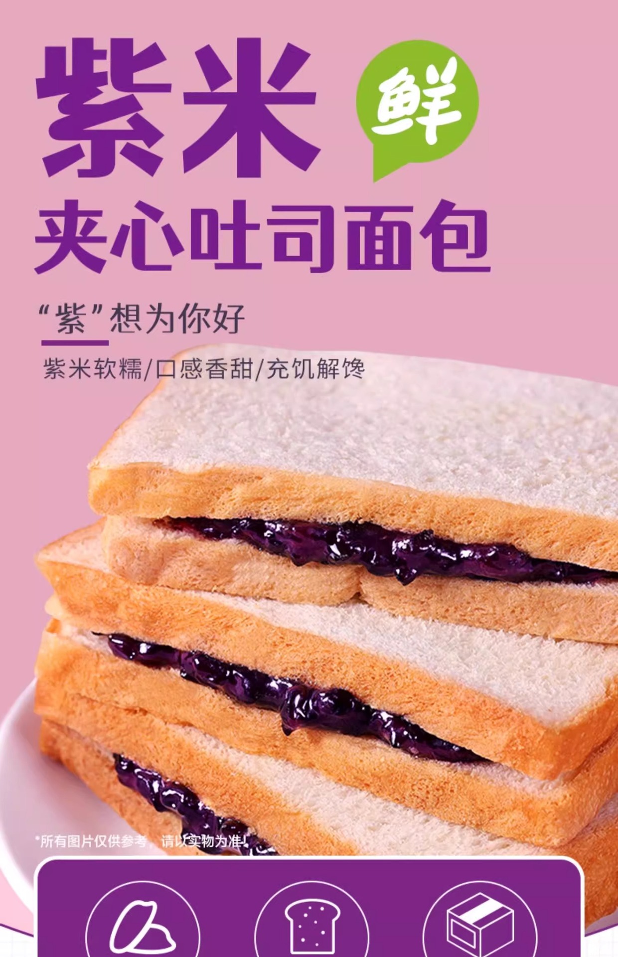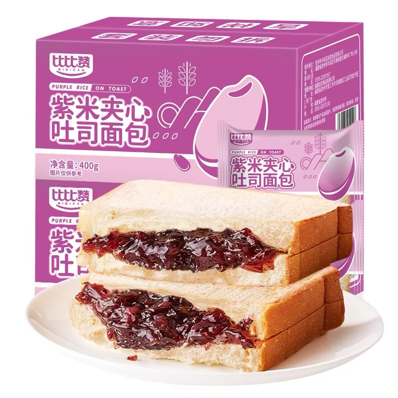 비비 잔 보라색 쌀 빵 풀 박스 아침 패스트 푸드 검은 쌀 치즈 샌드위치 토스트 스낵 레저 음식 스낵스토어 가기
