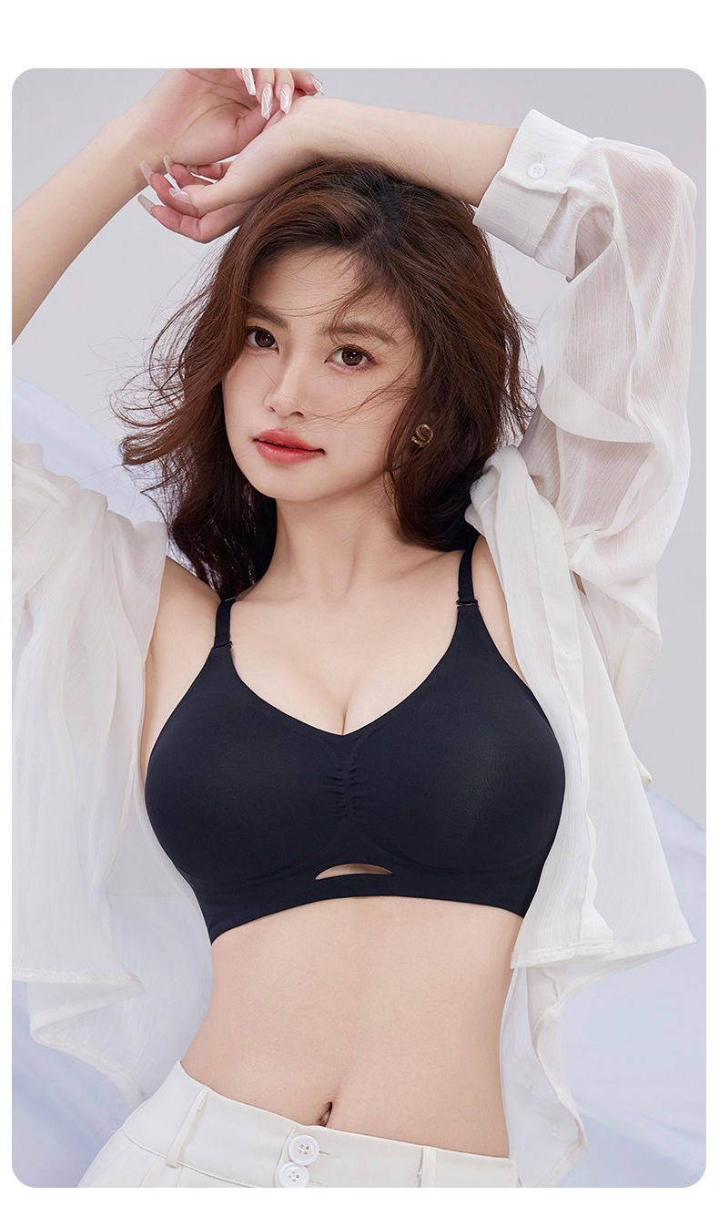 여름 뜨거운 소녀 큰 백리스 원활한 U 자형 아름다움 백 편안한 속옷 스포츠 무선 확장 만화 가슴 브래지어 여성을위한