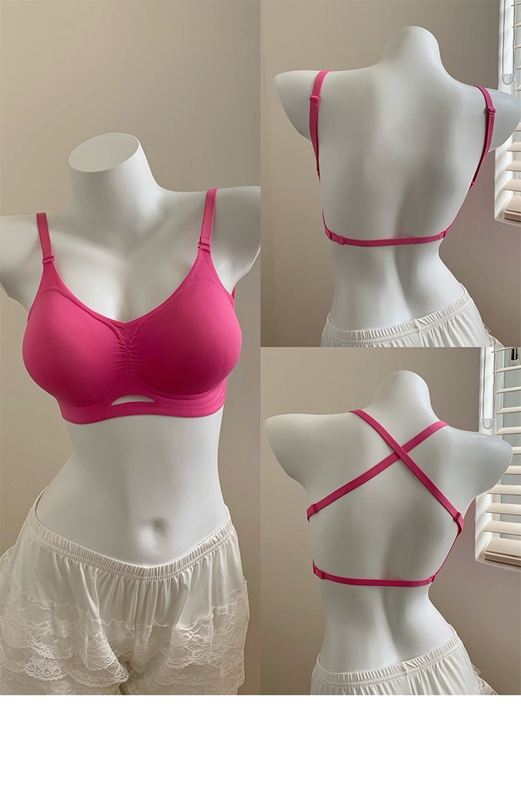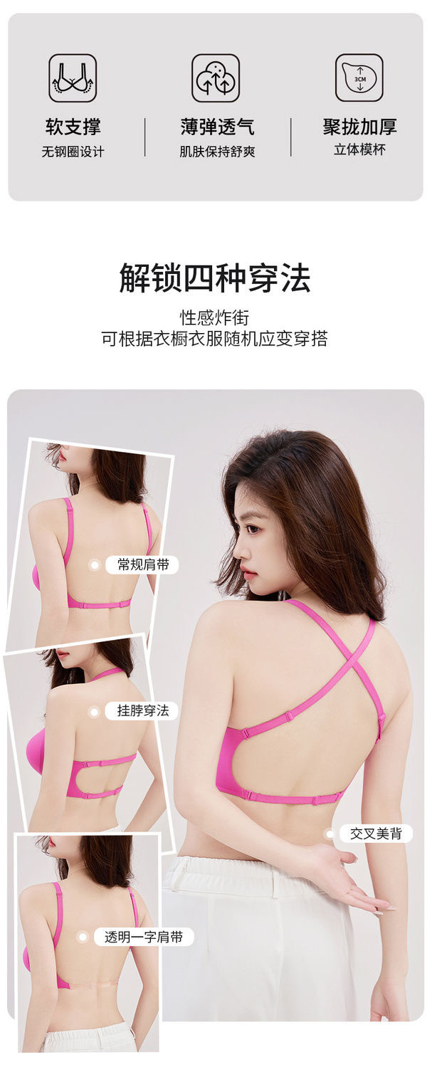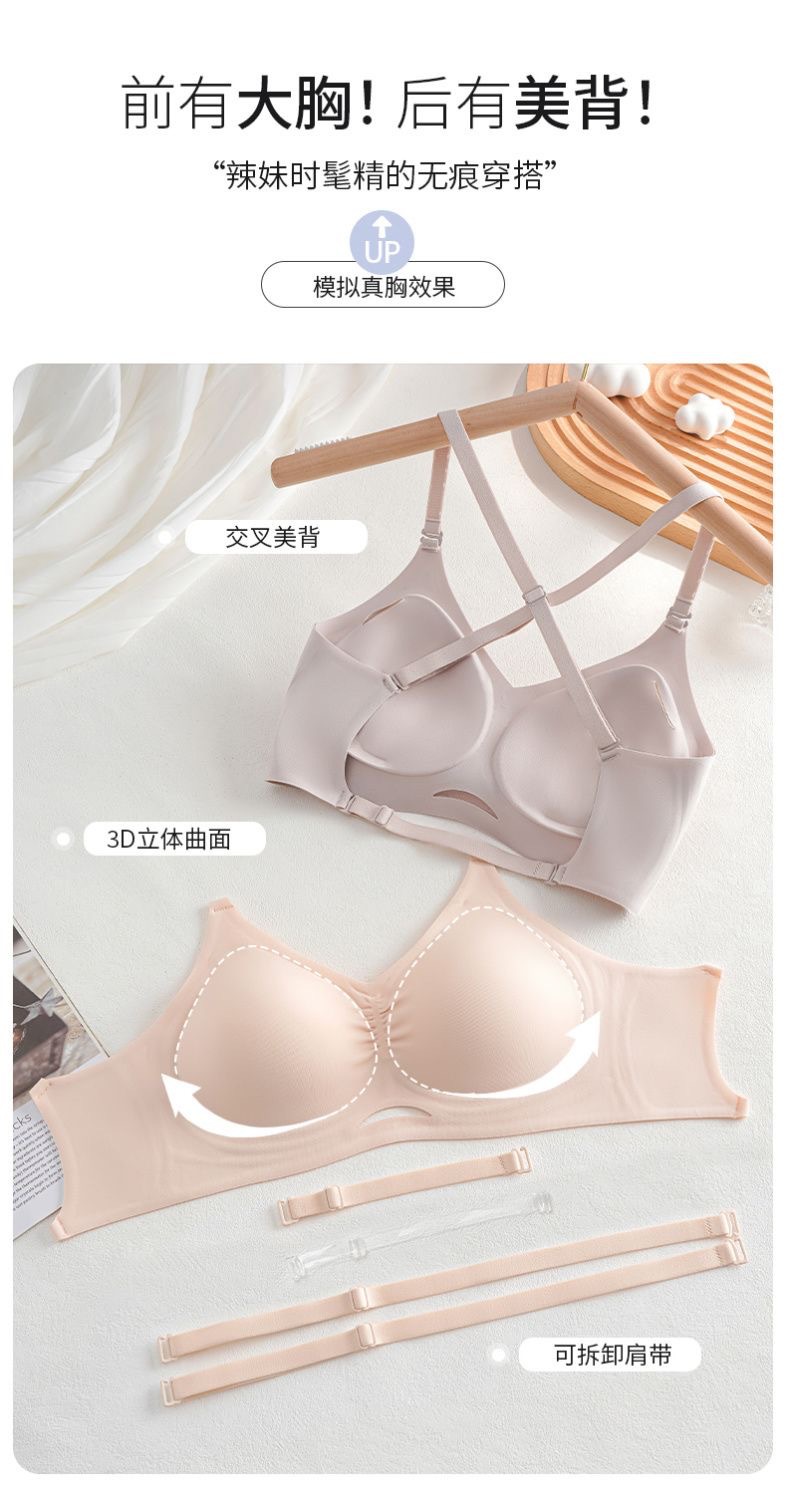 여름 뜨거운 소녀 큰 백리스 원활한 U 자형 아름다움 백 편안한 속옷 스포츠 무선 확장 만화 가슴 브래지어 여성을위한스토어 가기