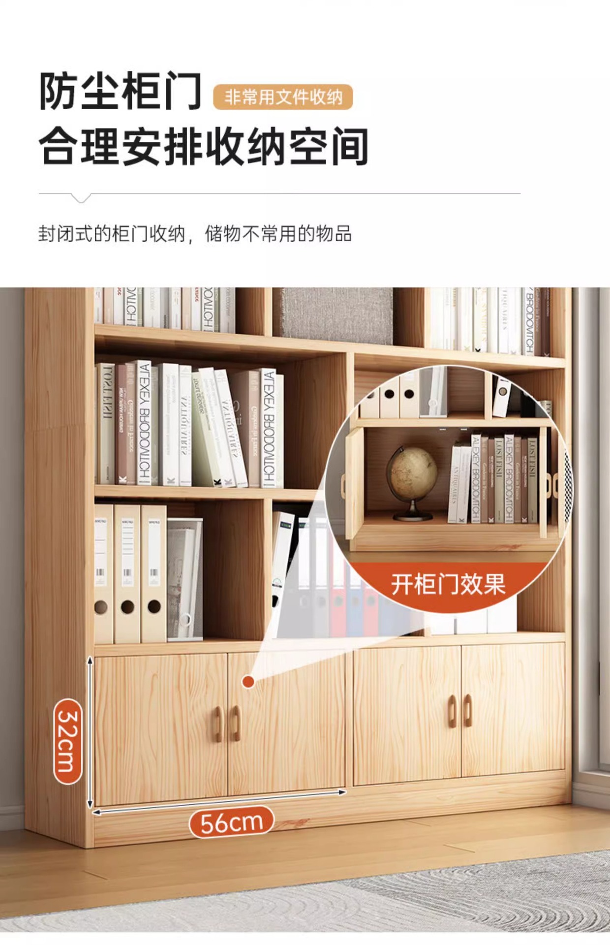 实木文件柜办公室靠墙资料柜柜收纳柜耐用带门储物柜分层架置物柜