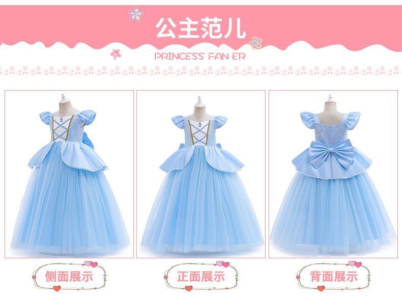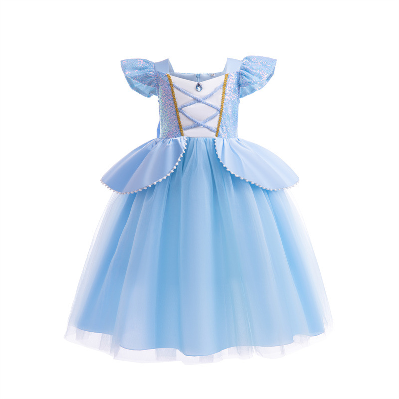 유럽과 미국의 새로운 원피스 작은 비행 소매 큰 치마 메쉬 페티 스커트 냉동 신데렐라 소녀 원피스스토어 가기