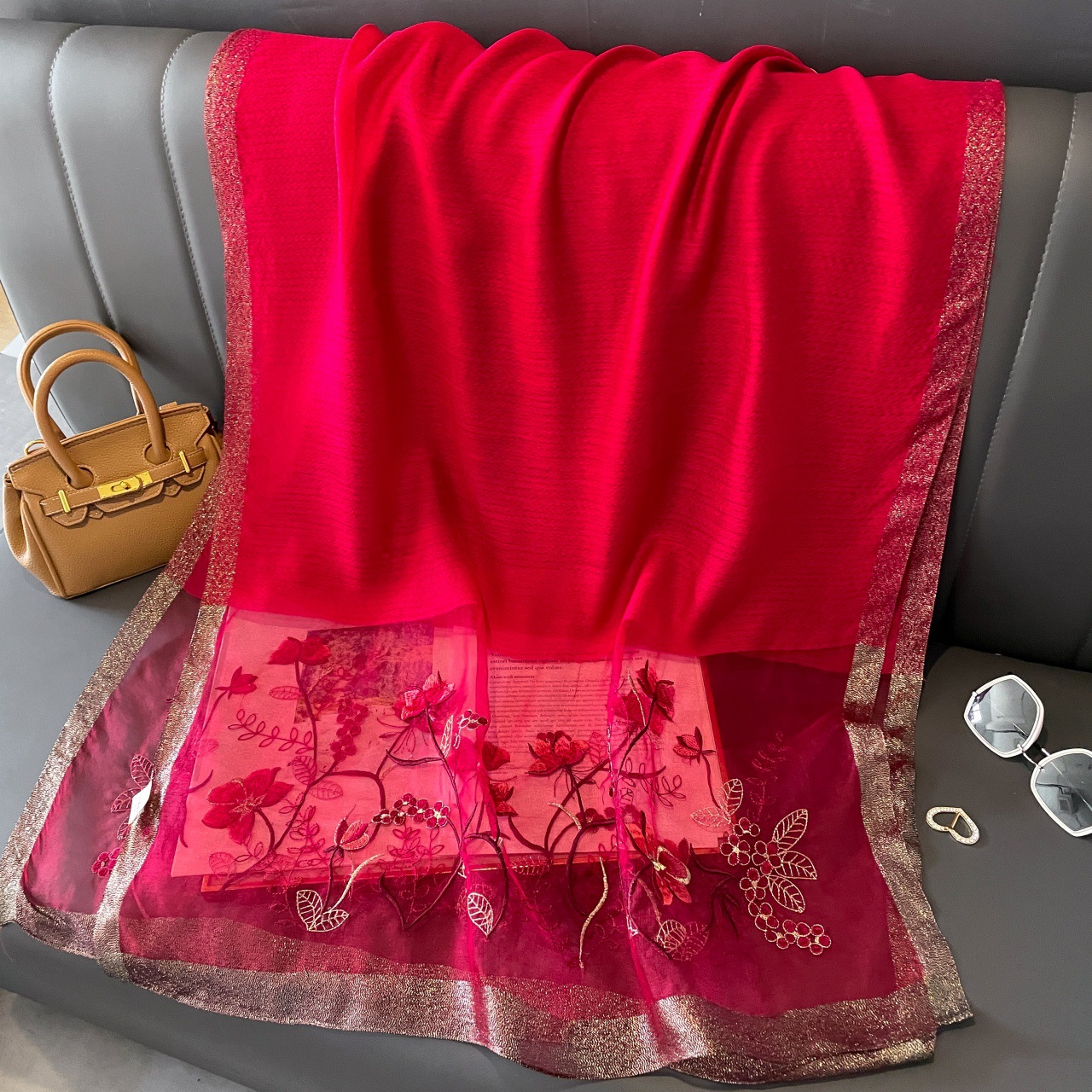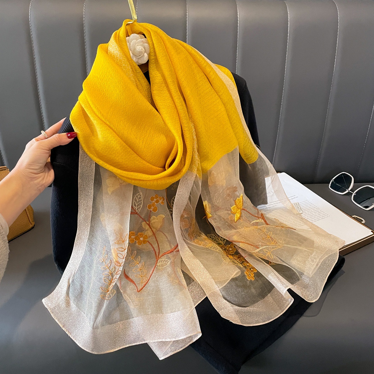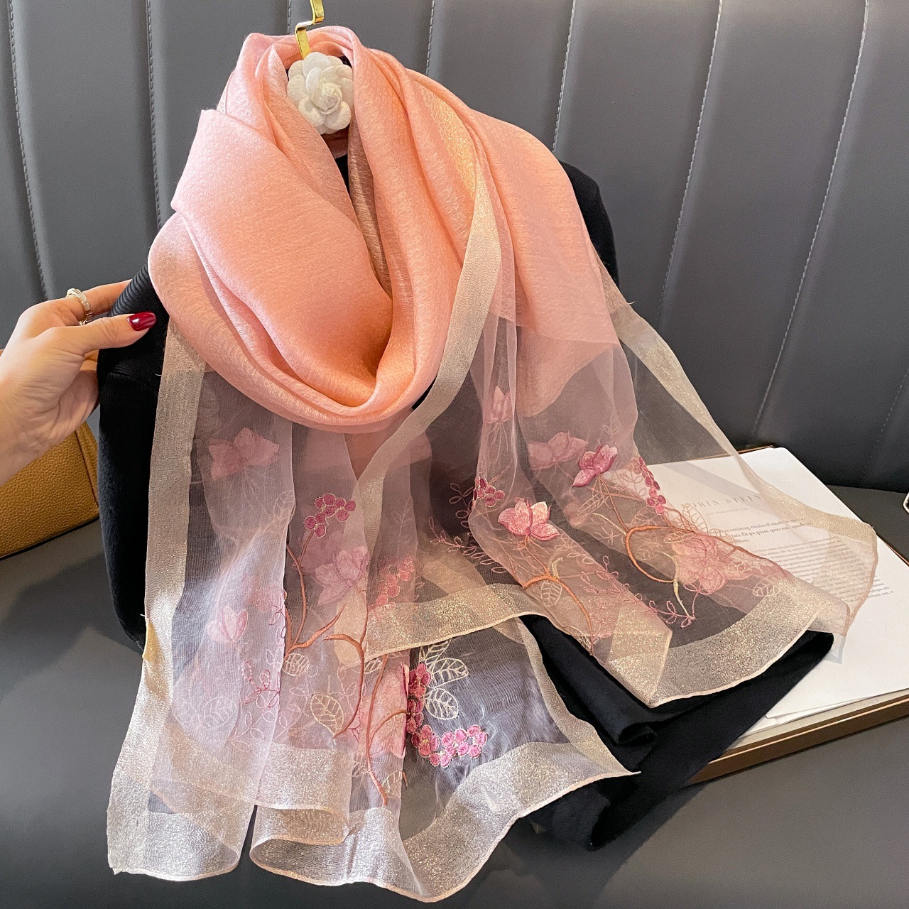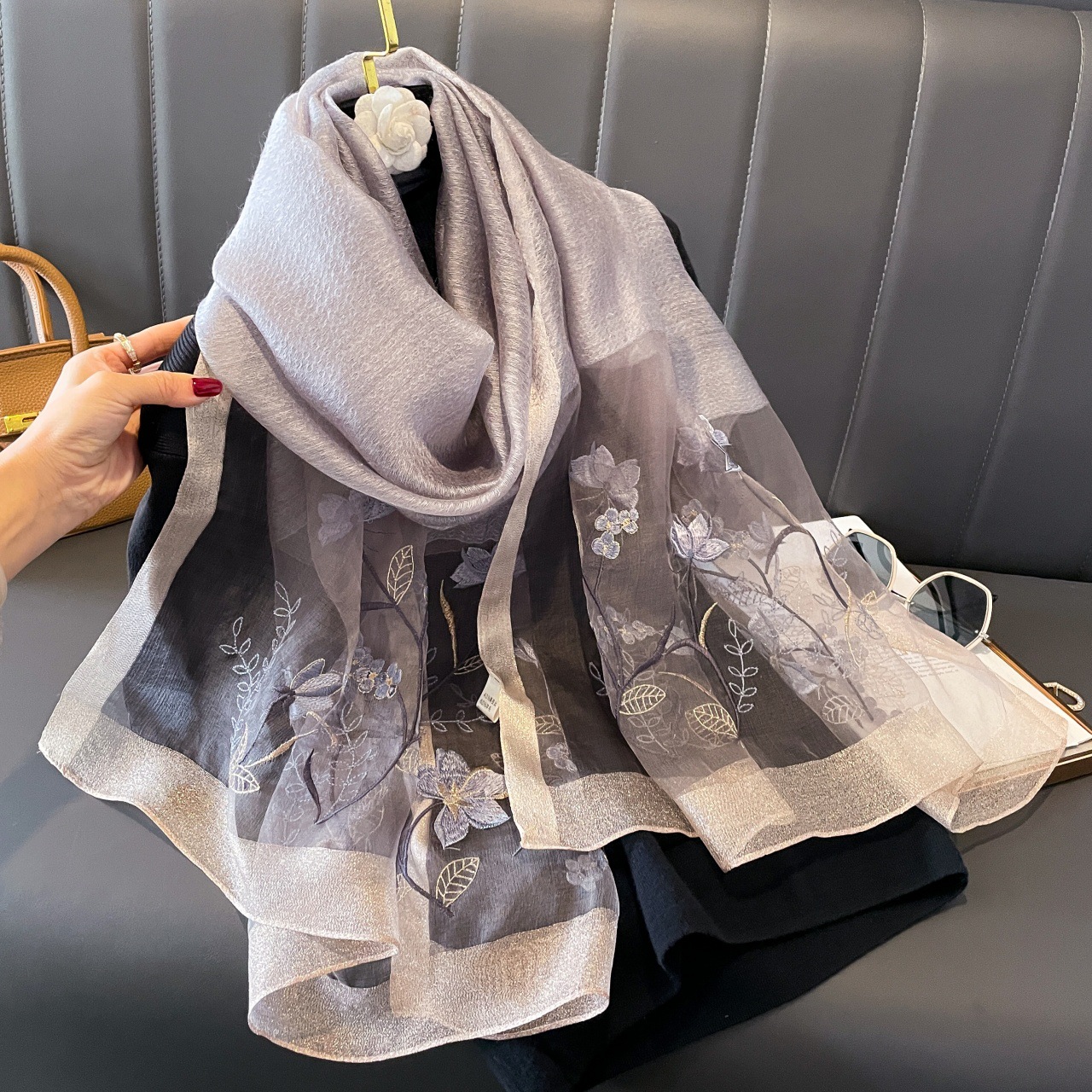 봄과 가을 새로운 자수 실크 울 스카프 여성의 겨울 따뜻한 목 에어컨 목도리 이중 목적 외부 착용스토어 가기