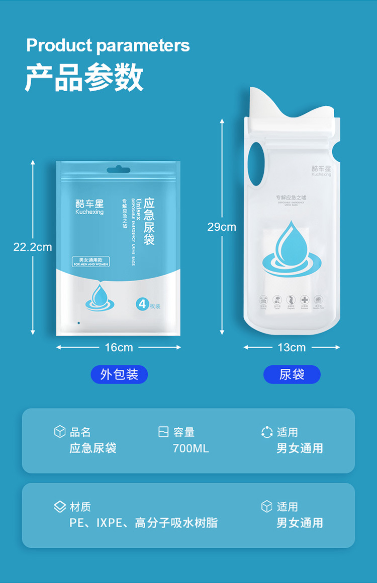 【产品名称】:酷车星应急尿袋