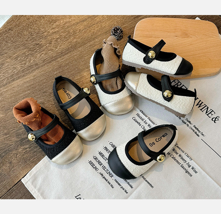 2025 가을 아동 신발 신상품 한국 스타일 가죽 신발 공주 신발 심플한 영국 스타일 사각코 여아 신발 도매