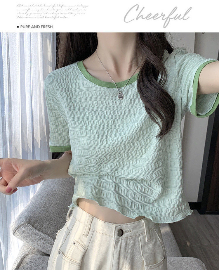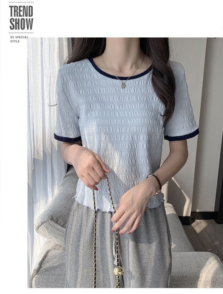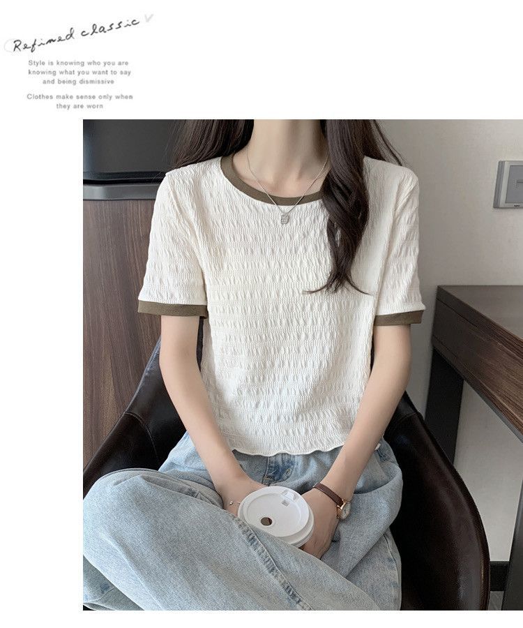 짧은 소매 어깨 나무 귀 프렌치 쇼트 탑 2024 봄과 여름 새로운 달콤하고 매운 탑 세련된 쉬폰 셔츠스토어 가기