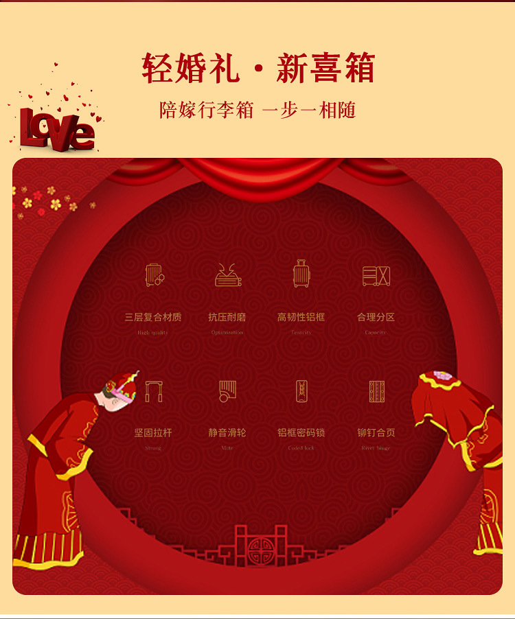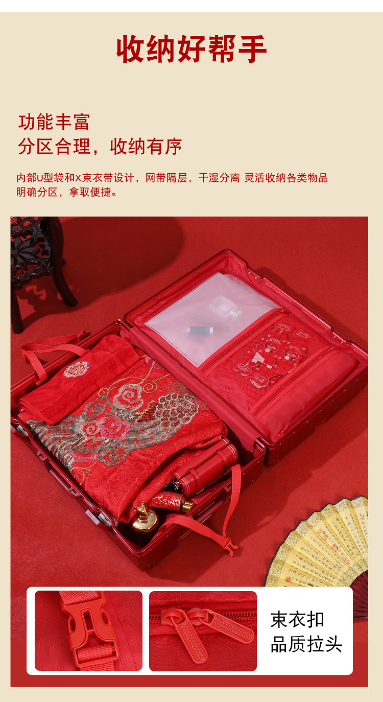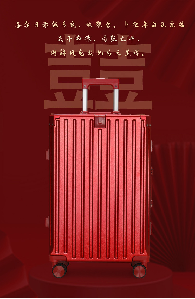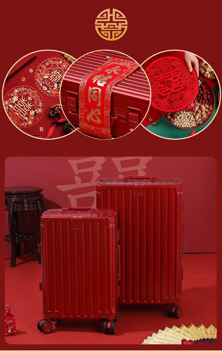 결혼 예물 가방 빨간색 약혼 예물 상자 결혼식 신부 빨간색 트롤리 가방 커플 여행 가방