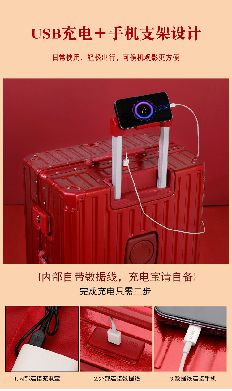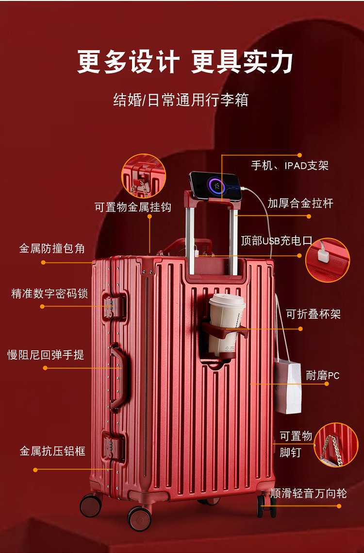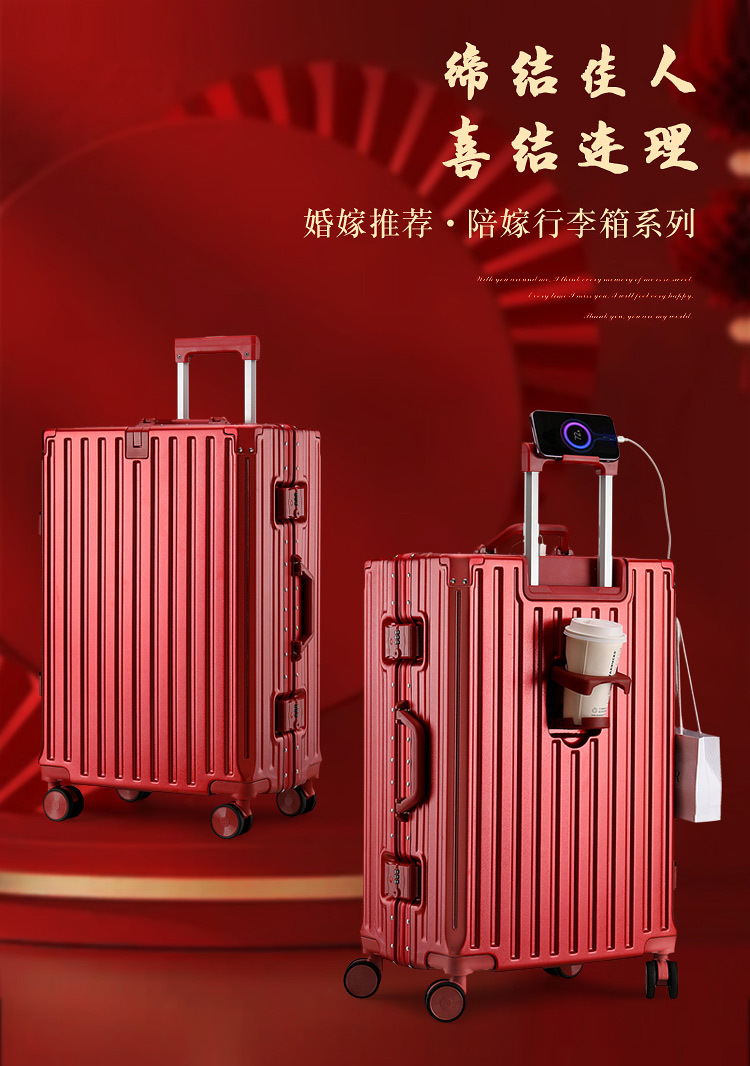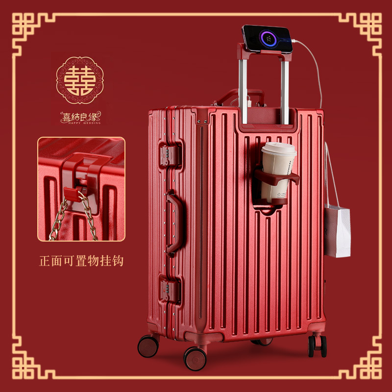결혼 예물 가방 빨간색 약혼 예물 상자 결혼식 신부 빨간색 트롤리 가방 커플 여행 가방스토어 가기