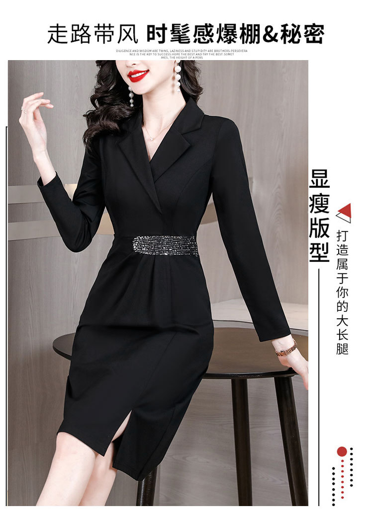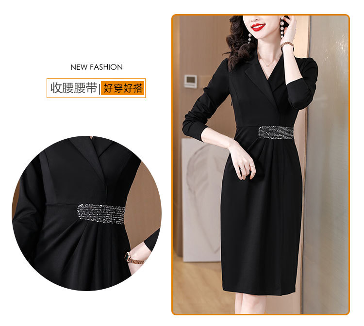 세련된 우아한 헵번 스타일 작은 검은 원피스 여성을위한 2024 가을 새로운 프랑스 우아한 통근 슬리밍 원피스스토어 가기