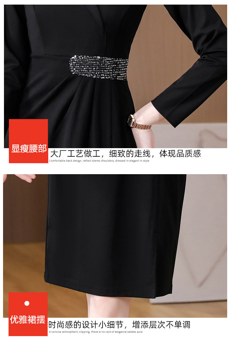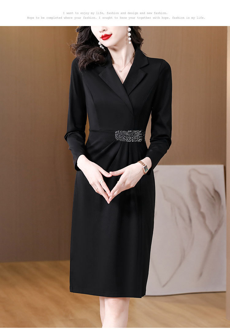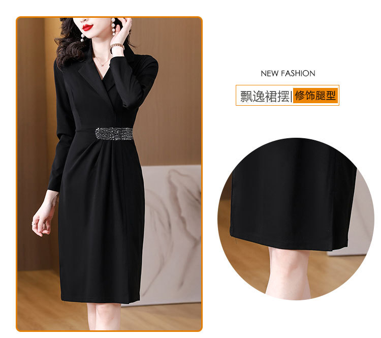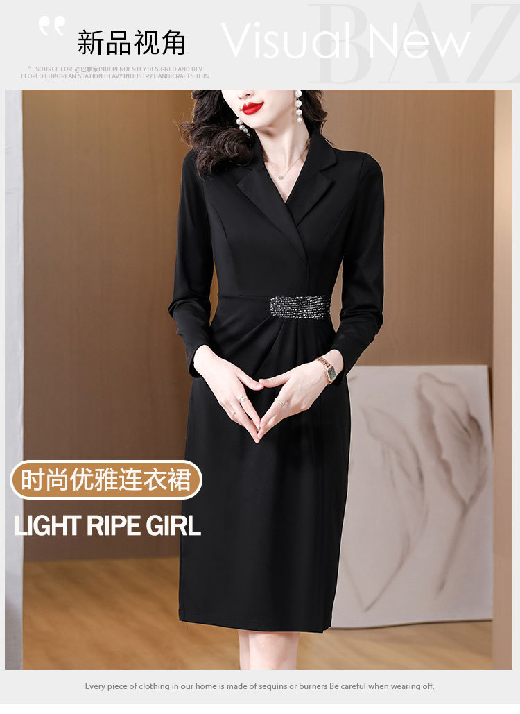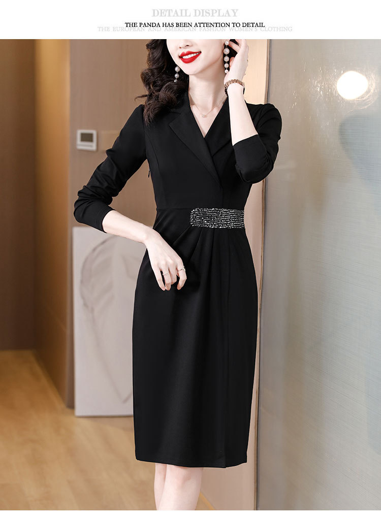 세련된 우아한 헵번 스타일 작은 검은 원피스 여성을위한 2024 가을 새로운 프랑스 우아한 통근 슬리밍 원피스
