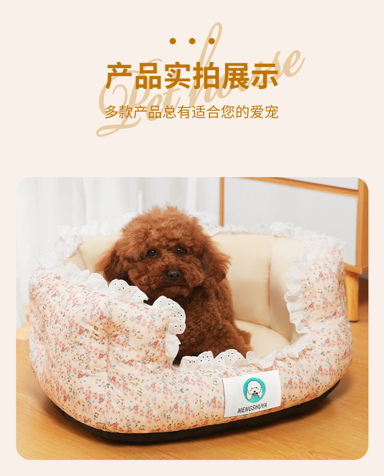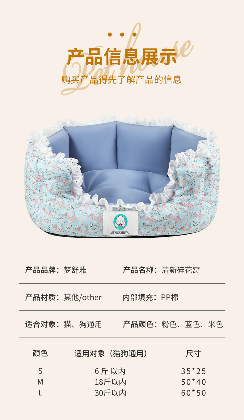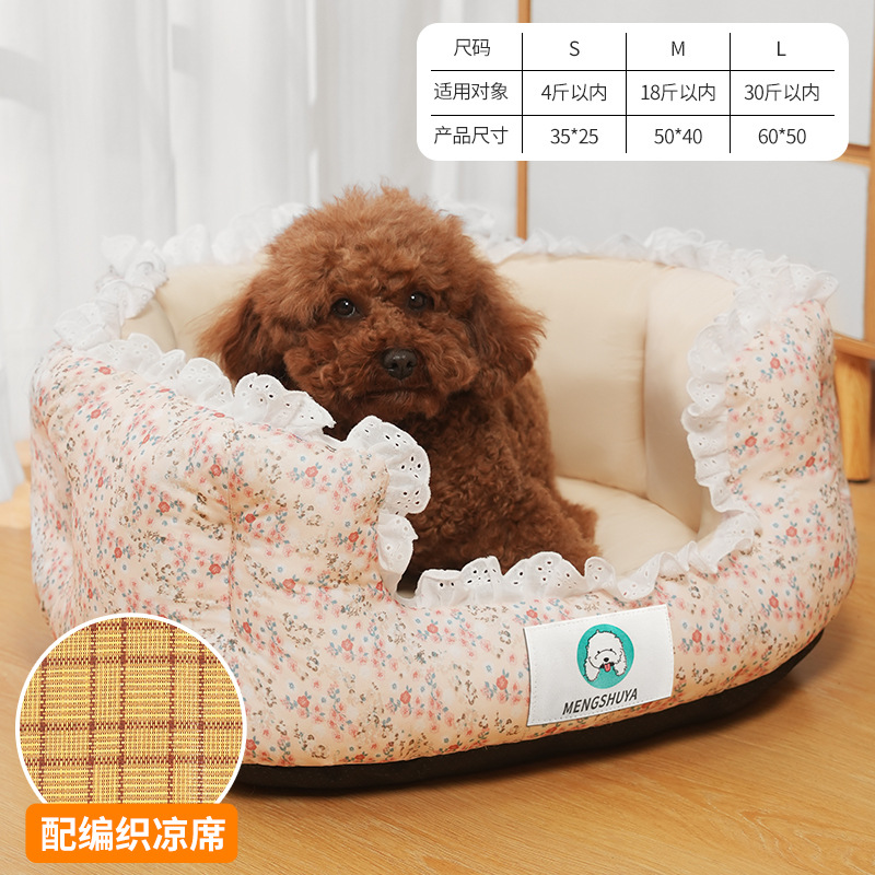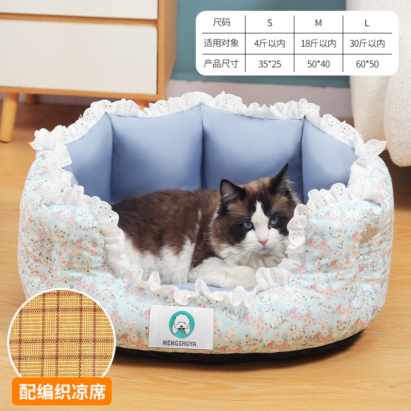 2024 레이스 장식 애완동물 침대 매트 강아지 수면 매트 신선한 꽃무늬 고양이 침대 사계절 사용 가능한 아이스 실크 매트스토어 가기