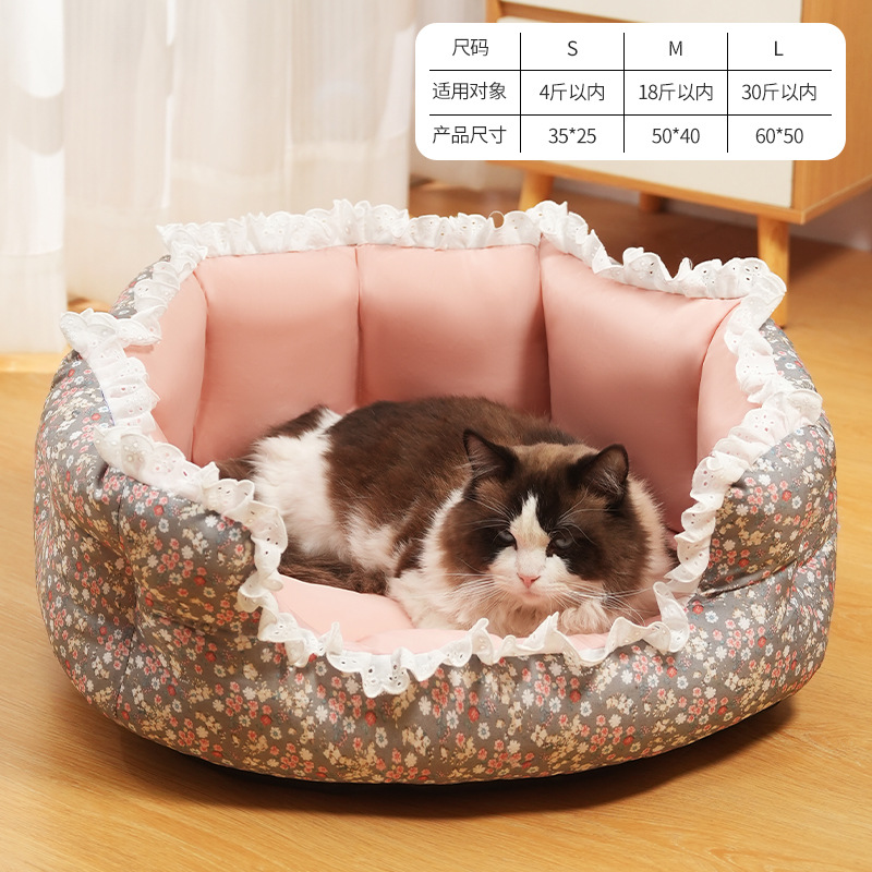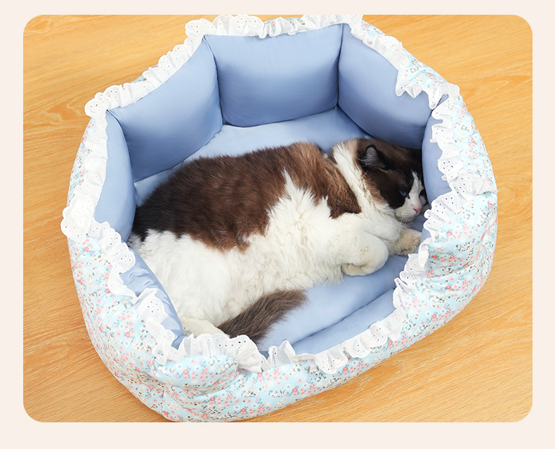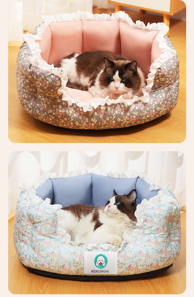 2024 레이스 장식 애완동물 침대 매트 강아지 수면 매트 신선한 꽃무늬 고양이 침대 사계절 사용 가능한 아이스 실크 매트
