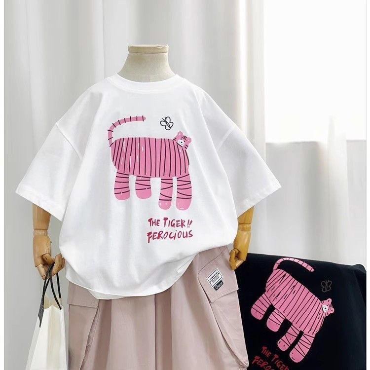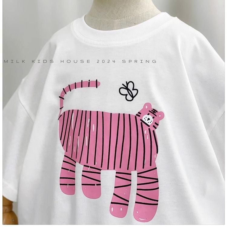 코튼 뉴 남학생과 여학생 반팔 티셔츠 어린이 여름 둥근 목 느슨한 상단 반소매 어린이 아기 옷